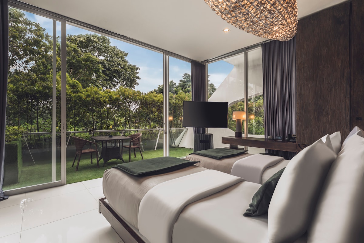- BREAKFAST included - Located within an upscale resort in the heart of Seminyak, Bali - this TWIN SUITE ROOM thoughtfully designed for relaxation and style, features a charming outdoor Bathtub, cozy bedding, and modern amenities to ensure a restful stay. Step outside your Suite and enjoy access to the resort’s exceptional facilities; stunning Lagoon-style swimming Pool with tropical Pool Bar, a delightful Restaurant, serene Spa center, and simple Gym. Perfect atmosphere to unwind...