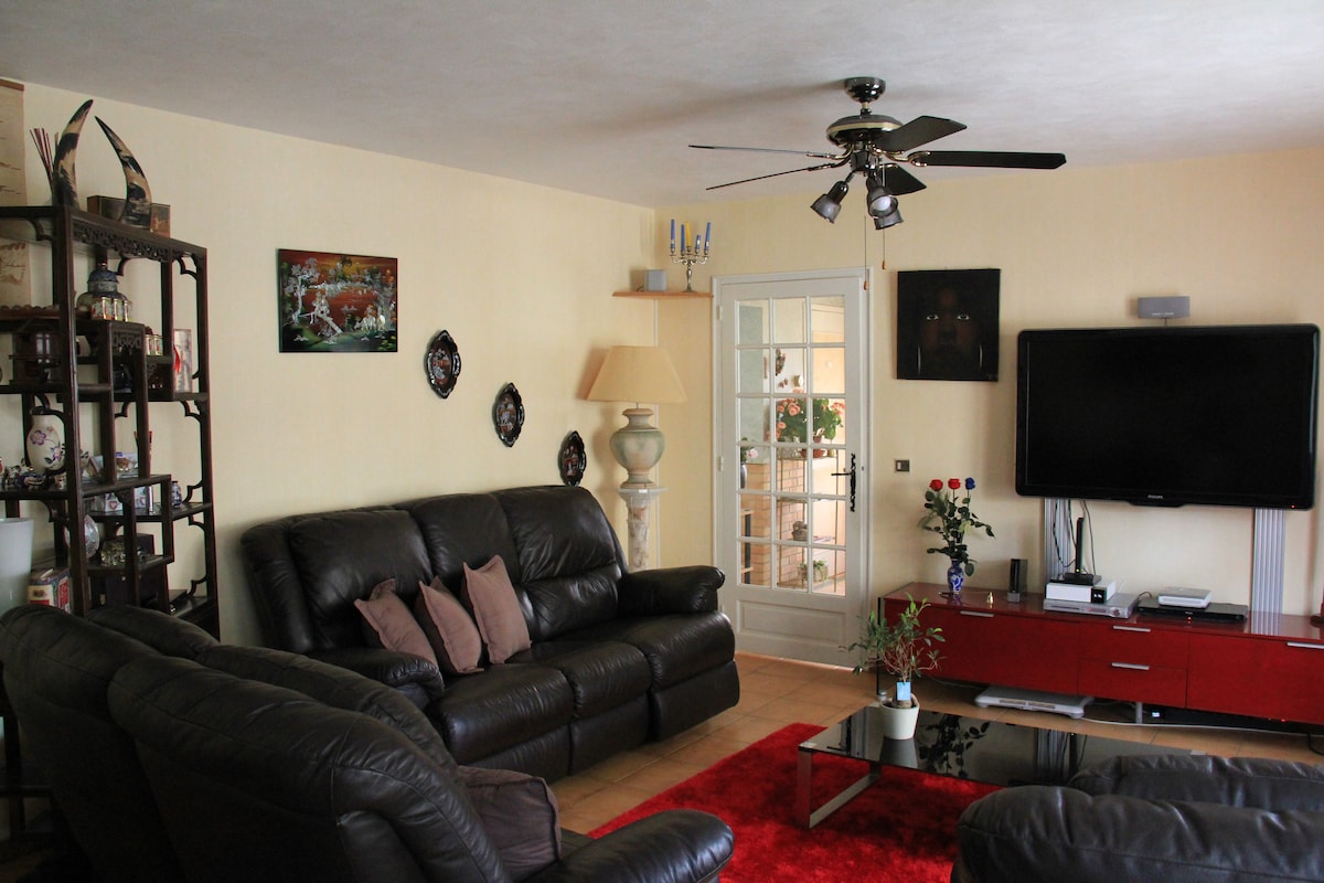 Mon logement est proche de Verdun (25 km) , la Belgique (30km), le champ de bataille de Verdun (15 minutes).... La chambre est idéale pour une famille de 4 personnes. L'entrée (par le jardin) est indépendante. La partie chambre se compose de 2 espaces séparés par une cloison : un grand lit et, sur une estrade, 2 lits une personne. Dans la véranda, vous pourrez manger (frigo, micro-ondes, bouilloire) et regarder la télé. Le petit-déjeuner est compris dans le prix. Pas de problème de parking!