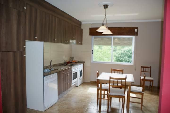 A restored house with all the comforts you need for a wonderful retreat and/or get-together with family and friends. This house is located in an old abandoned village near the river with a beautiful little beach. If you enjoy being in contact with nature, this is the ideal place; you can find otters, many varieties of birds, etc. The house has two bedrooms, a bathroom, a fully equipped kitchen, and air conditioning. The pool is shared with another house. Meals are available upon request.