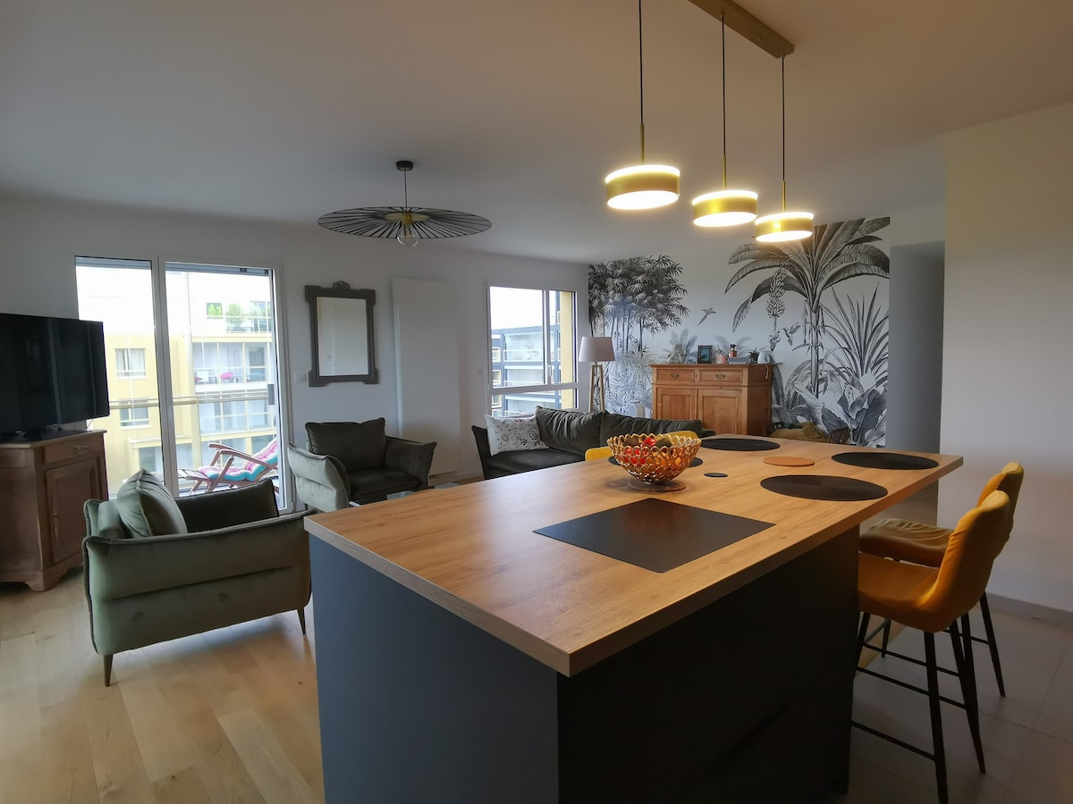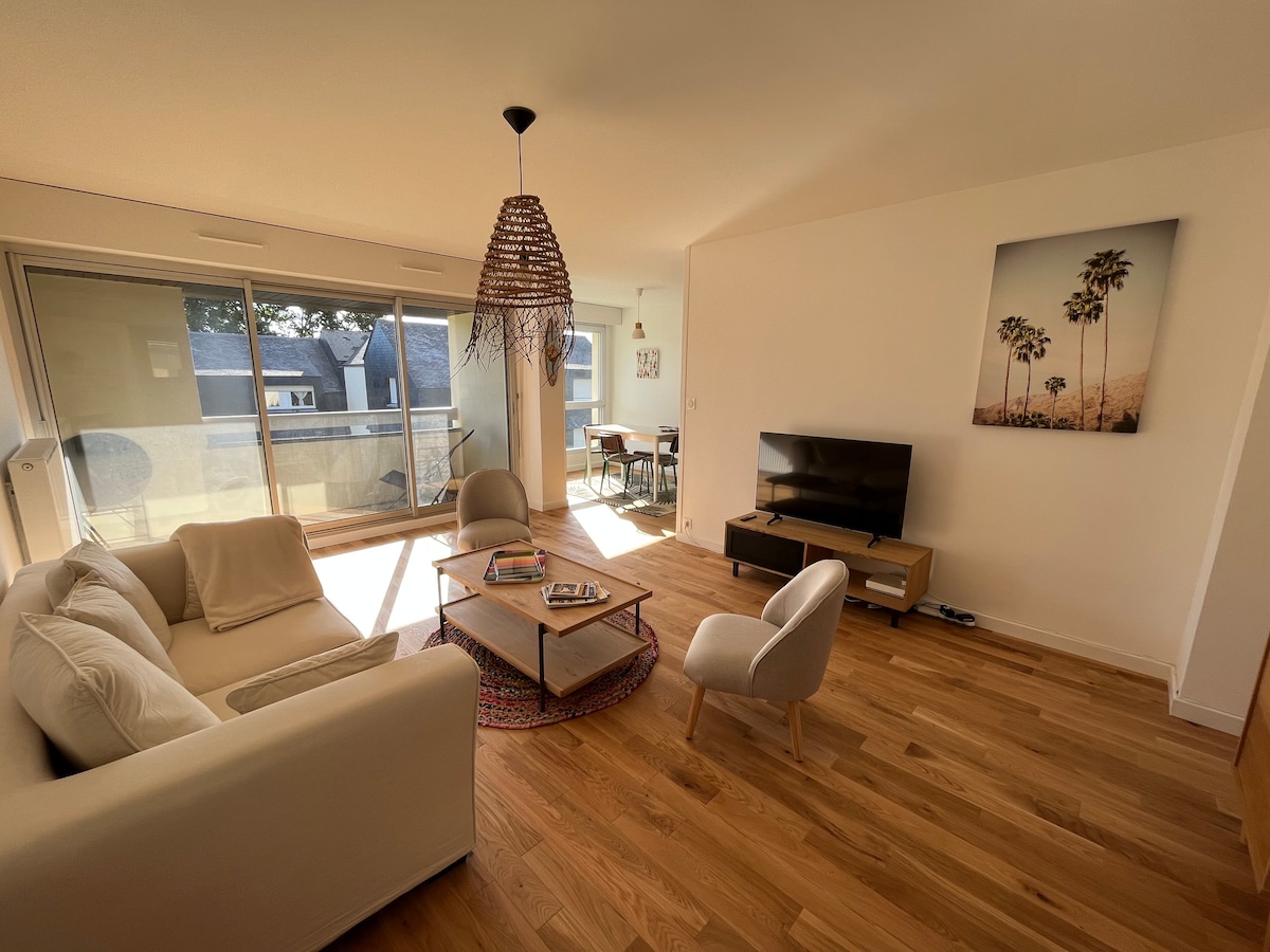 Idéalement situé à 10 mns des plages et du centre historique, que vous soyez vacancier, de passage pour le travail, en formation ou en alternance, notre appartement saura vous ravir par sa situation au calme et son espace intérieur. Arrêts de bus, commerces (zones commerciales très proches) et un accès rapide à la rocade de Vannes viennent compléter ses atouts. 2 places de parking privatives sont situées devant l'appartement.