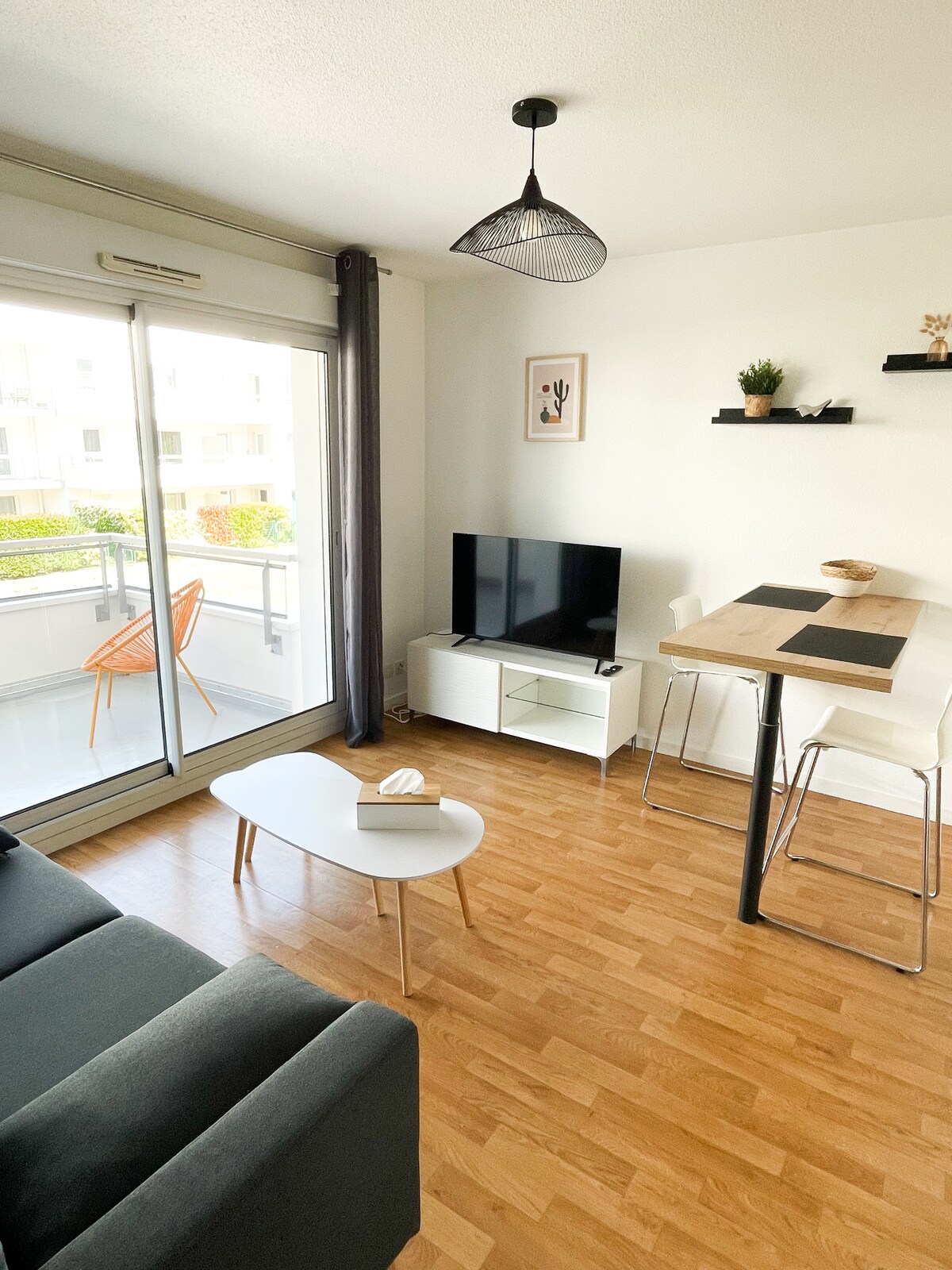 Appartement T2 entièrement rénové dans un style contemporain, spacieux (42 m²), très lumineux et fonctionnel . Il se situe dans une résidence de standing très calme et arborée. Terrasse exposée sud sur parc sans vis à vis . Parking privatif et garage à vélos. A proximité immédiate du centre historique (15-20 min à pieds, 5 min en voiture ou bus). Commerces à pieds et lignes de bus en bas de la résidence. 2 Velos mis à disposition à titre gracieux Tout équipé.