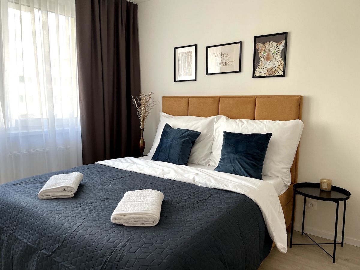 1,5 BR is close to the airport, with free parking and an exit to the highway. Avion/IKEA shopping mall is in 5 minutes. Enjoy smart self-check-in. Come and go whenever you want. * The apartment has 60 m2 * fully set kitchen * a huge smart TV with all the streaming platforms * fast wifi (100Mbps+) * free parking * King-size bed in the bedroom * Queen-size bed in the second bedroom * towels, bed linens, shower gel ..... all included * free coffee (Tchibo espresso machine), tea