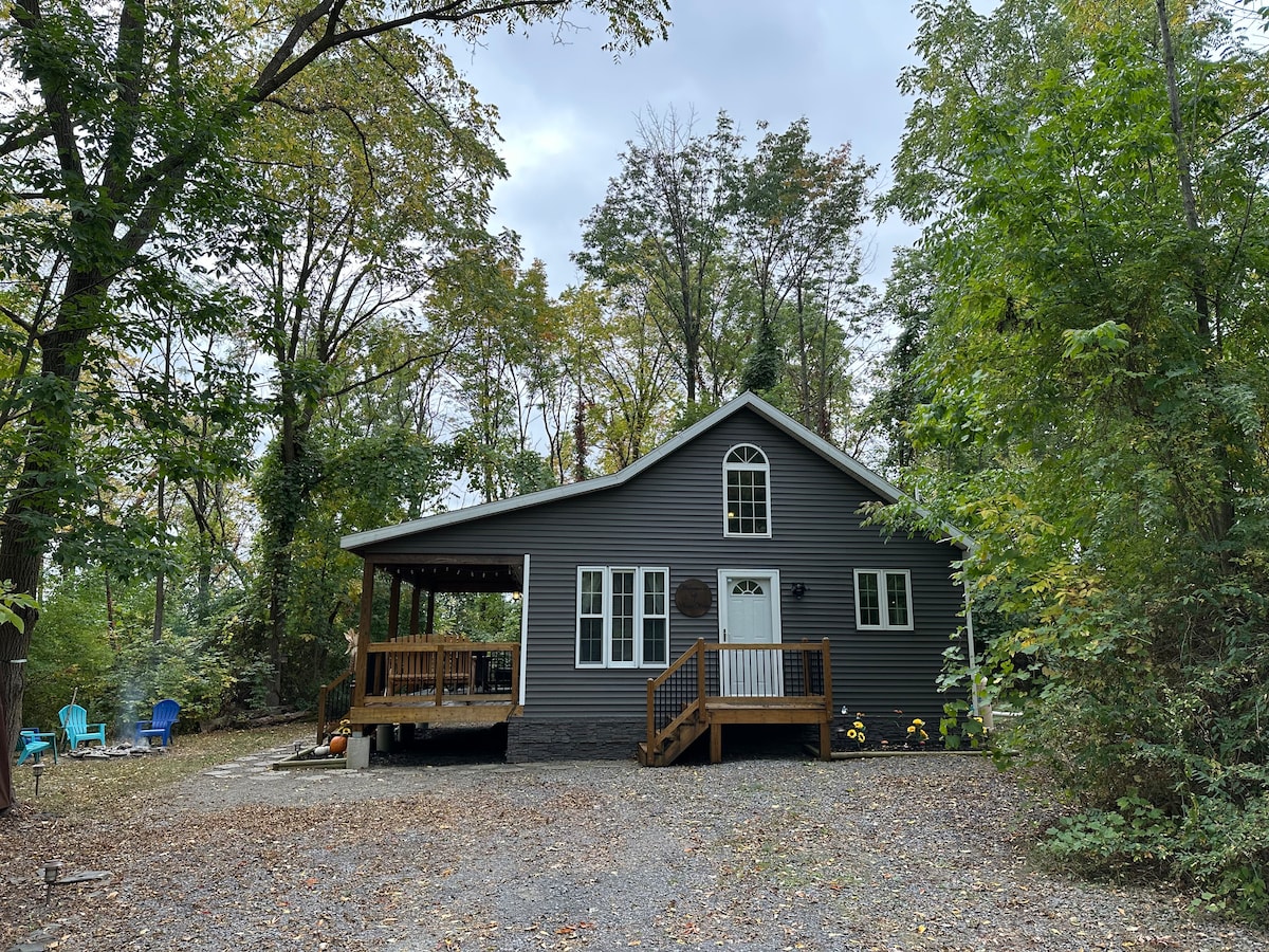 Keep it simple at this peaceful and centrally-located place. Located on the Cayuga Wine Trail, with the Seneca Wine Trail 8 miles away. Travel down a long gravel driveway to a modern cottage hidden back in the trees. Enjoy peaceful campfires, relax in the hot tub, watch Netflix or Disney plus on our smart tv, or bring your favorite blue rays/dvds with you to watch. The cottage has a beautiful open floor plan with a fully equipped kitchen for all your cooking needs and fully stocked coffee bar.