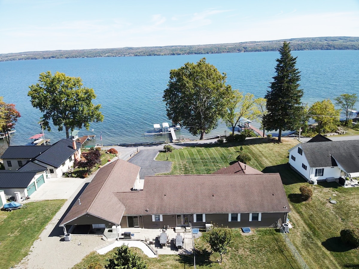 Welcome to our beautiful lake house on Seneca Lake! The spacious lake level oasis has spectacular views and outdoor space! We offer all the indoor and outdoor amenities you desire on a vacation. Relax on the covered deck or in the sunken hot tub. Enjoy lots of patio seating with built-in kitchen, sink, and outdoor refrigerator. The dock, 100' of level lawn, and canoe and kayaks make this your best vacation yet. Come experience a lake week near all the best wineries and breweries in the region!