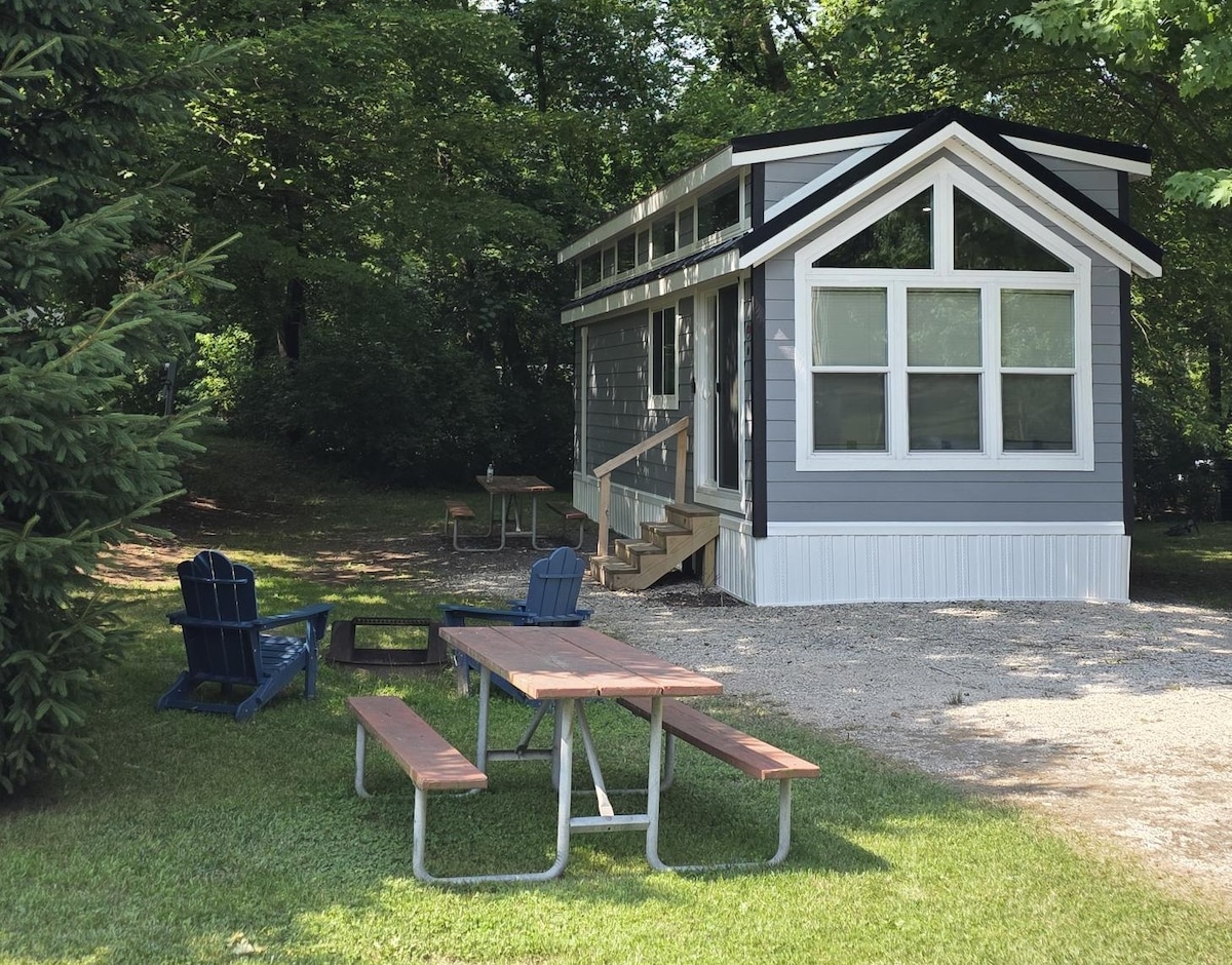 Nestled in the trees on a waterfront property this cottage is a haven for nature enthusiasts! With 9 acres and lake access this elegant cottage is the perfect couples get away. The cottage is located on the back of The Showboat Hotel property nestled in nature with privacy from the Hotel and includes a fence yard space perfect if you are traveling with a fur baby.