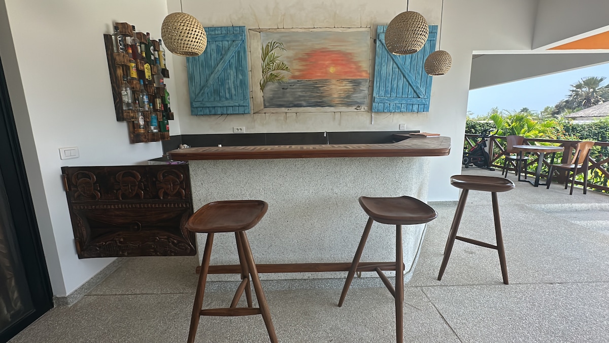 Its a house in the jungle, near the sea, and not to far of village ( 1'5 km), is very peaceful and beautiful place with a big and clean garden. Here you can find the tranquility that you need. it is a new house with all the services to be well and confortable. If you like the original travels you will love it!! It is ideal to know and share knowledge with the neighbors of the area.