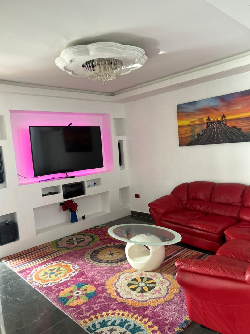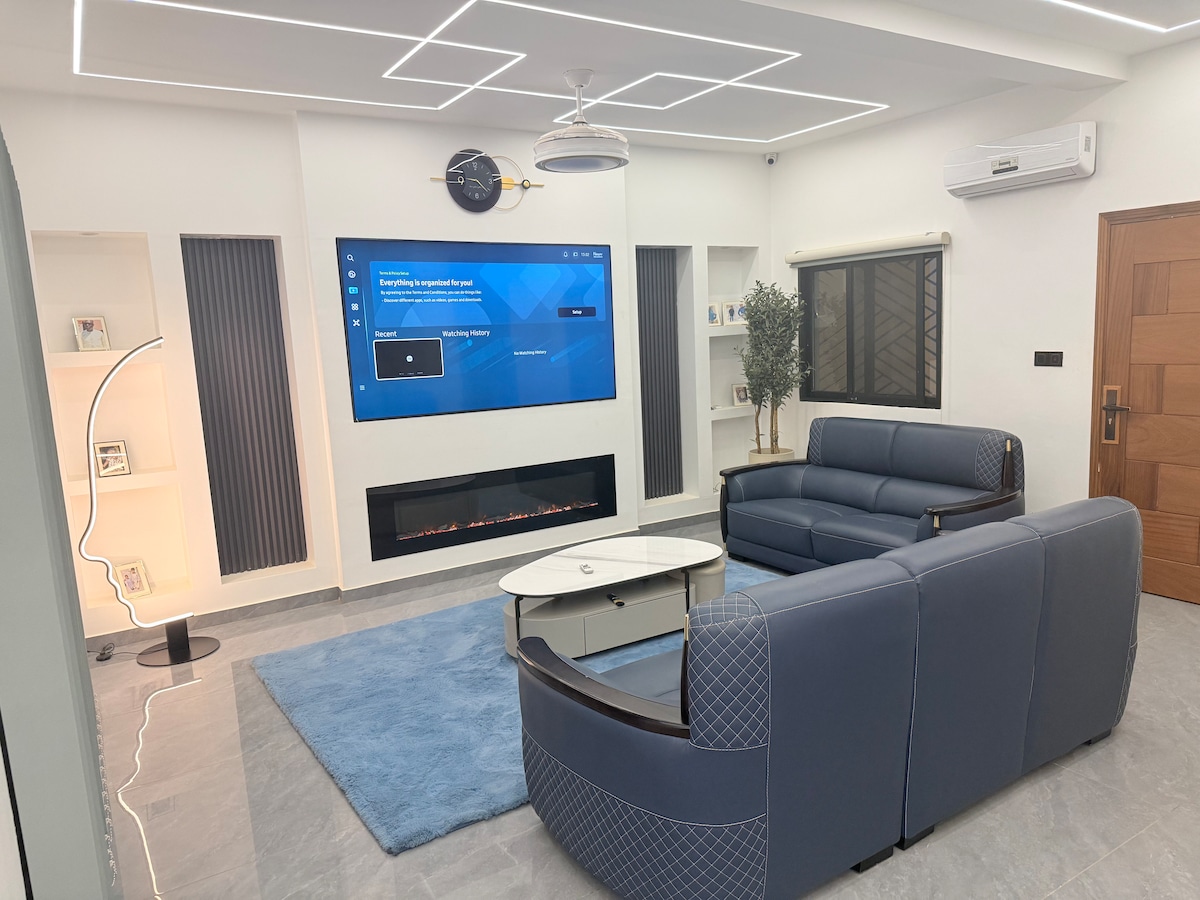 Logement de 2 chambres, salon, 2 salles de bain, cuisine avec internet fibre, TV (Netflix, prime et toutes les chaînes ). calme et élégant situé au quartier Point E sur la rue A. Très accessible, Supermarché, pharmacie, restaurants ...