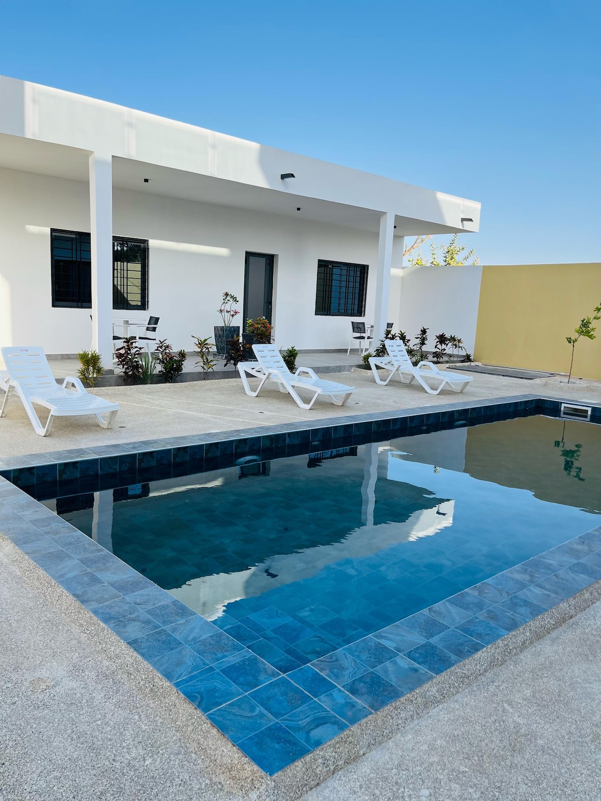 Lehne dich zurück und entspanne dich – in dieser ruhigen, stilvollen und modernen Unterkunft. Nagelneues Haus in ruhiger Wohngegend in Strandnähe mit kleiner Küche, Garten und Pool. Erlebe authentisches und gastfreundliches Senegal abseits der Touristenströme.