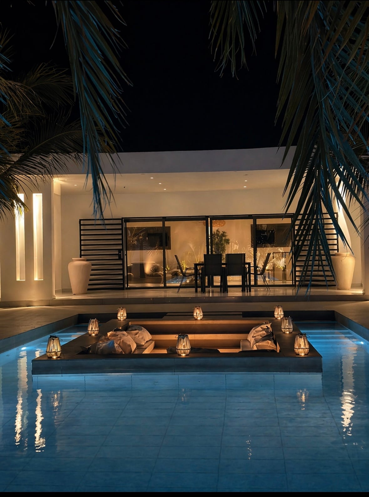 • 4 suites parentales climatisées avec salles de bain privées et dressings. • Un espace de vie lumineux de 60 m² • Espace télé avec grand fauteuil en L pour des soirées cosy • Une piscine privée de 40 m² avec plage, parfaite pour vos instants de détente. • Un jardin soigneusement entretenu, à l’abri des regards. • Agréable terrasse de 30m2 avec table à manger, salon de jardin et deux ventilateurs pour plus de confort • Espace transats • Un parking privé pour 2 voitures.