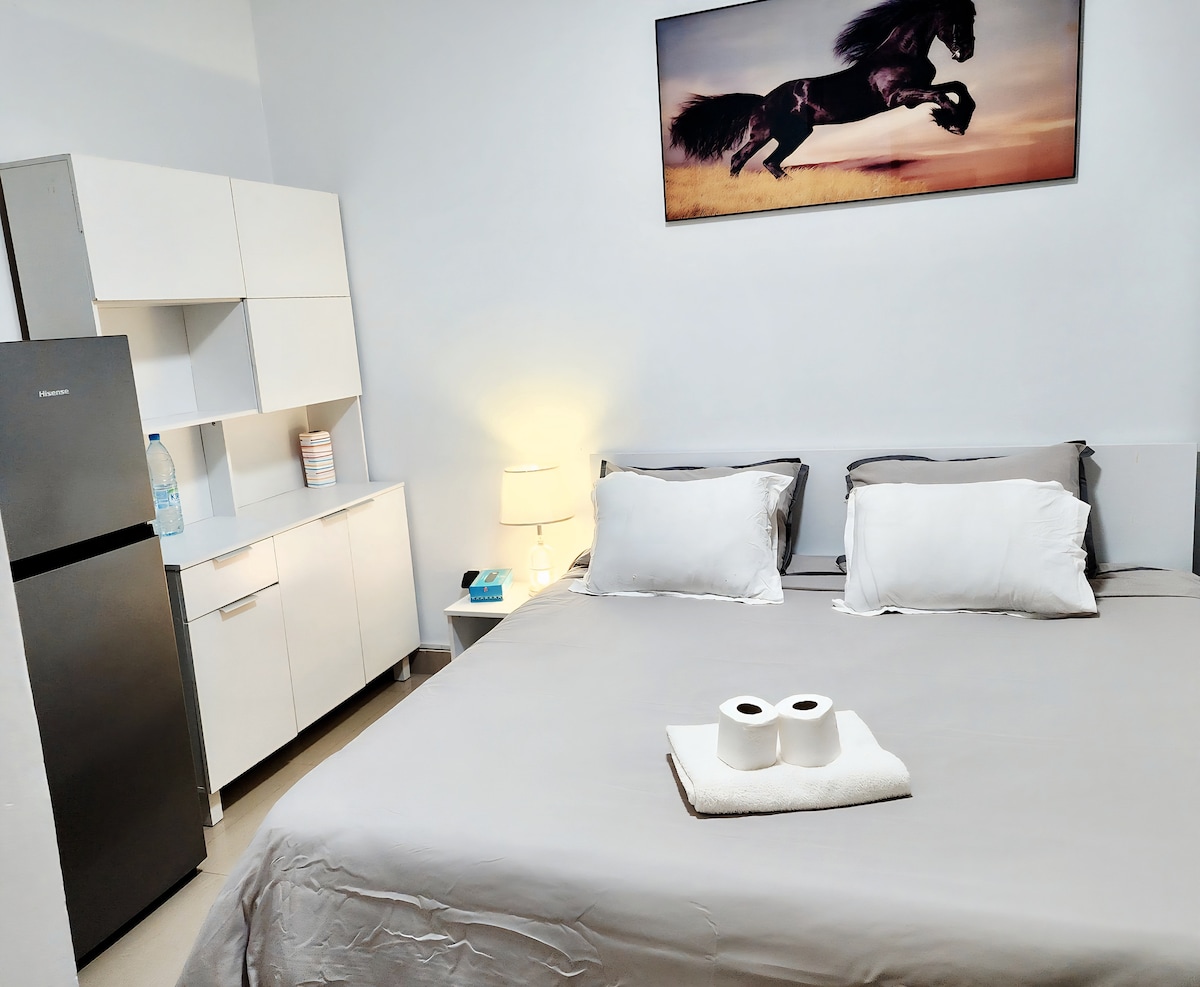 An independent room located within a secure & peaceful neighborhood at Mermoz. It provides a quick 7-min commute to Plateau via the picturesque Corniche. Many banks, like Société Générale, Ecobank, BICIS...along with two supermarkets & pharmacies, are all within walking distance. The room is on the 2nd floor of a building that offers excellent accessibility to various other areas of Dakar. Guests can anticipate a fully equipped room, thoughtfully designed to ensure a relaxing and enjoyable stay.