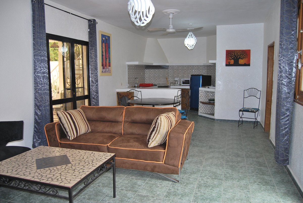 Situé à 1 km de la plage de M’bour, le Riad côté jardin propose des hébergements, une piscine extérieure, un bar, ainsi qu’une réception ouverte 24h/24, pour plus de commodité. Une connexion Wi-Fi est accessible gratuitement dans l'ensemble des locaux et la climatisation est disponible moyennant des frais supplémentaires. Un petit-déjeuner continental ou à la carte vous sera servi à l’appart'hôtel. Le Riad côté jardin possède aussi un barbecue, un jardin et une terrasse bien exposée.
