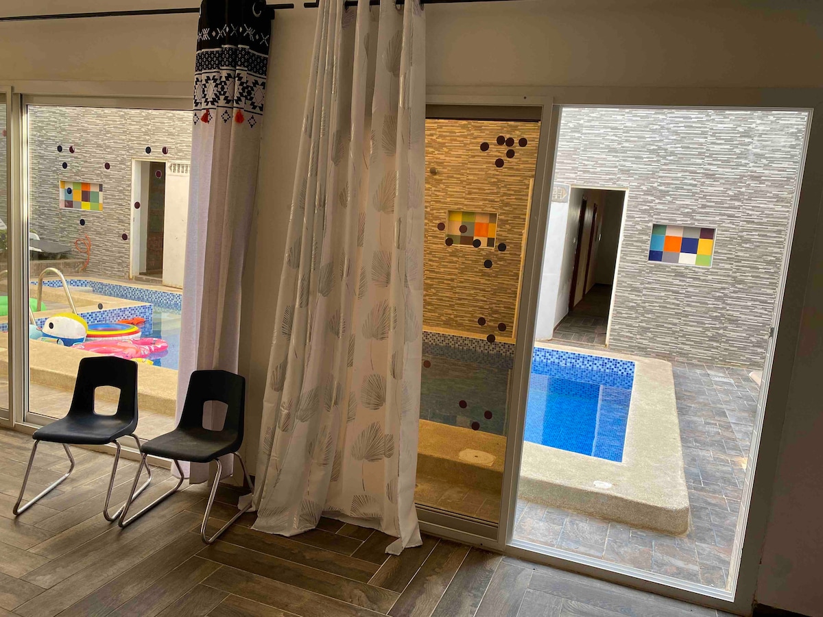 Maison climatisées entièrement meublée , située dans un quartier calme à 500m de la plage. Composée d'une cuisine , de 2 chambres équipées de leurs propres salle de bain ; d'un jardin arboré d'arbres fruitiers ( banane , pamplemousse et citron) et d'une piscine. Prévoir des frais de consommation d'électricité, de gaz et d’eau ( compteur Pré-Payé) sauf consommation de la piscine qui fonctionne à l'énergie solaire. Notre gardien assure sa protection. Maison jumelée