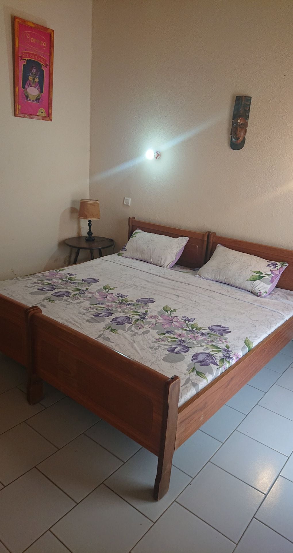 Grande maison avec appartement totalement indépendant, accès par escaliers extérieurs. Vous pourrez profiter de cet appartement sur la plage paisible de Tchoupam, d’une vue unique et exceptionnelle sur l’océan accordant régulièrement de magnifiques couchers de soleil. Le gardien Moustapha est présent dans le village et pourra vous accueillir, c’est une personne de confiance qui s’occupe de la maison depuis sa construction. Je peux également vous donner le contact d’un taxi man pour vos escapades