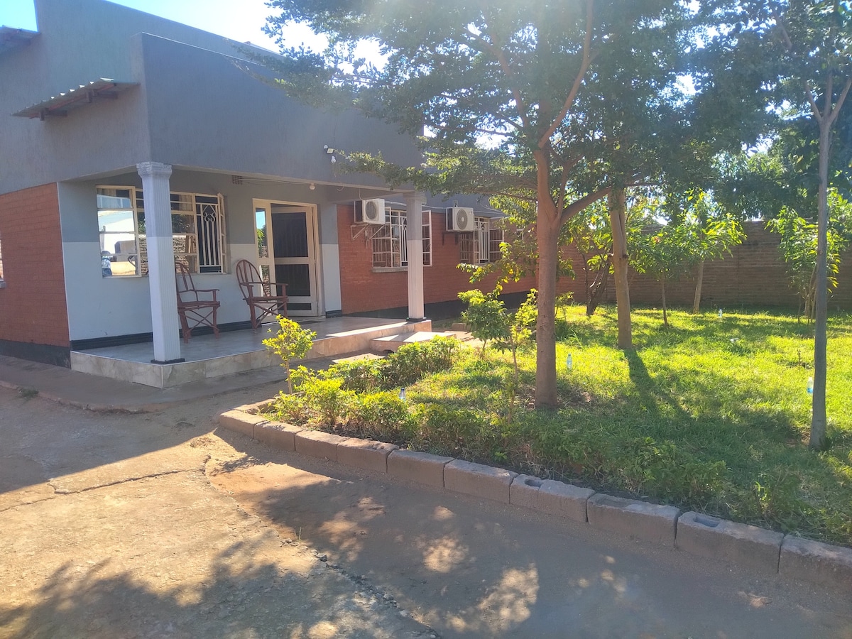 Modern spacious cottage 10 min walk from beautiful Lake Malawi beachfront. The house is situated on the top road with lots of space around so great for family / friend gatherings with a separate dining/brai area in the garden. Also a lovely spot to enjoy the breeze and get a bit of peace away from bustle of the village. Secure parking with watchman on site and DSTV/Wifi in the main house. Sleeps 8 in 4 doubles all with mosquito nets and fans. Aircon in main bedroom&sitting room.