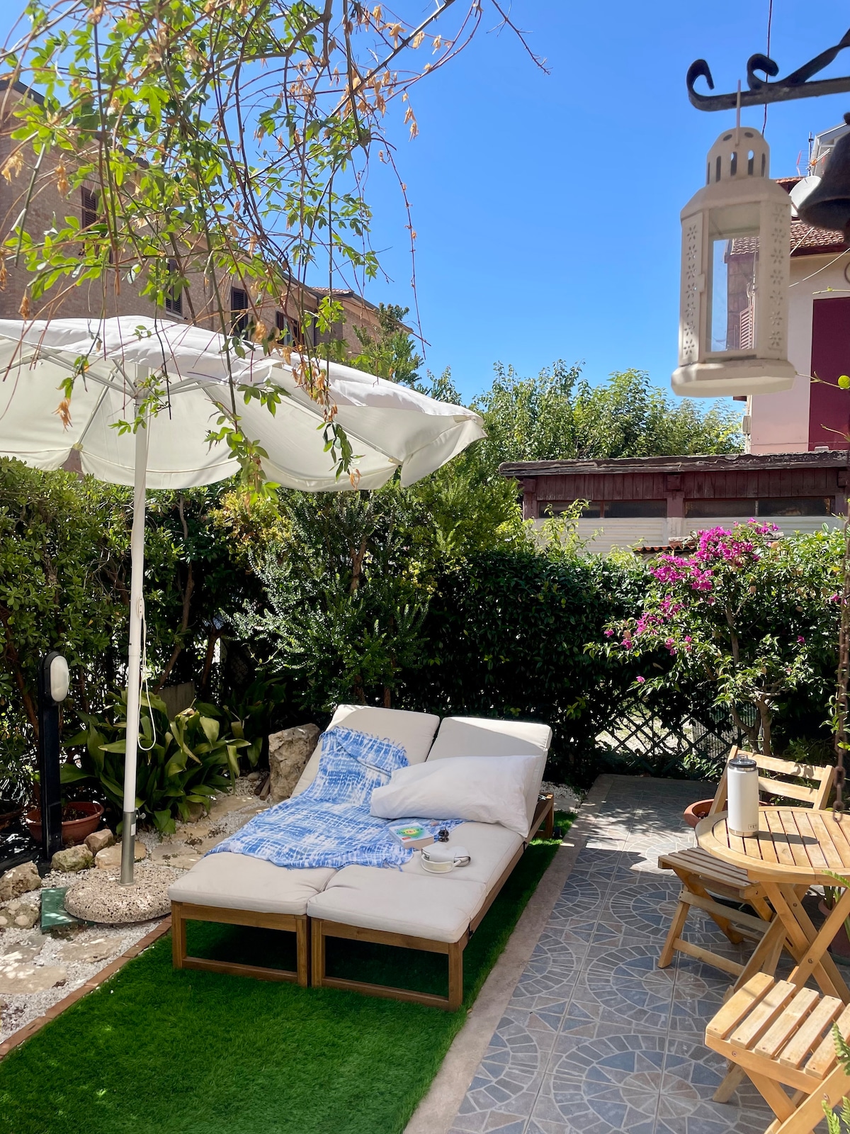Accogliente monolocale con bagno, salotto e angolo cottura, con accesso a giardino e piscina. Offriamo due biciclette gratuite con seggiolino per bambini. La spiaggia attrezzata, con bagnino e bar/ristorante, è proprio di fronte (ombrellone e 2 lettini: 10€/giorno a maggio, giugno e settembre, 15€/giorno a luglio e agosto). Parcheggio privato nel giardino (10€/giorno a aprile, maggio, giugno e settembre, 15€/giorno a luglio e agosto). Tassa di soggiorno: 2€/notte/persona