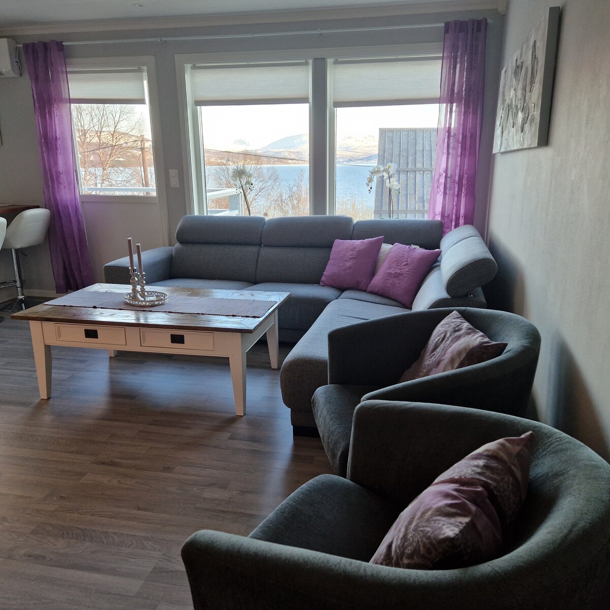 Explore Aurora and the midnight sun in this perfect getaway in the north of Norway. By the center of Finnsnes, 5 minutes from Senja is a small but modern and cosy apartment with tiles and heating in all floors in a light, modern design. The apartment has all the kitchen amenities, and fast and stable wifi. You can easily walk to shops, restaurants, hiking tracks. Ski facility is 5 minutes away in car. Hosts are in the building