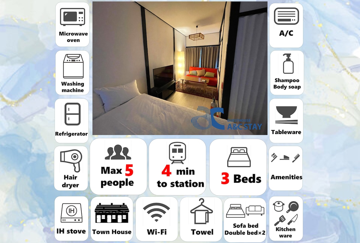 民宿,不等于廉价。打破对民宿的传统定位,我们能给予您的更是一份家的温暖,超越五星级酒店的服务! 1. 我们致力打造"吃喝玩乐住行"一站式服务,让您不虚此行。 2. 房屋内的设备、展示品、用品均为5星级标准。 3. 我们的清扫工作由"日本第一"之称的专业清洁公司负责,卫生质量严格把关。 4. 民宿周边有许多"隐家"餐厅,都是当地人有口皆碑,爱不释手的美食。我们可为您推荐及免费预约。所谓"酒香不怕巷子深",在享受高性价比的同时,相信也一定能满足您的味蕾,让您品尝到别具一格的、舌尖上的"大阪"。 坐落于大阪市中心(城东区),建立于明治42年(1909年)。第二次世界大战时,在空袭中遗留下来的为数不多的独立独户。于2015年由日本知名设计师设计并装潢,占地面积150平米,闹中取静。房屋外观优雅大气,内饰装潢及设施均采用现代化设备。历史文化与现代时尚的两两结合,无论是文化体验,还是宽敞舒适,都是大阪市内屈指可数的高级和风旅荘。相信这里一定会是您的不二选择! 我们在设计上追求人性化,整套房子有两处卫生间并且与洗漱区,大浴场实现三室分离,确保多人入住时,有独立空间,干净卫生的环境。