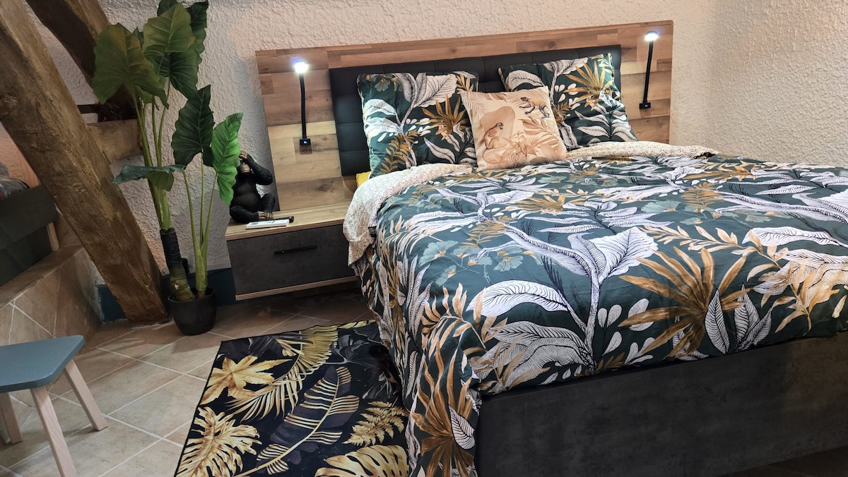 Profitez d'un séjour inoubliable dans ce logement avec cuisine ouverte, un couchage deux places avec le canapé lit et un couchage deux places en mezzanine. Possibilité d’avoir un lit parapluie sur demande Venez entre amis, pour un déplacement professionnel et vous pourrez profiter d’un petit terrain de pétanque dans le jardin ainsi que d'une table et de chaise l'été. Calme absolu.