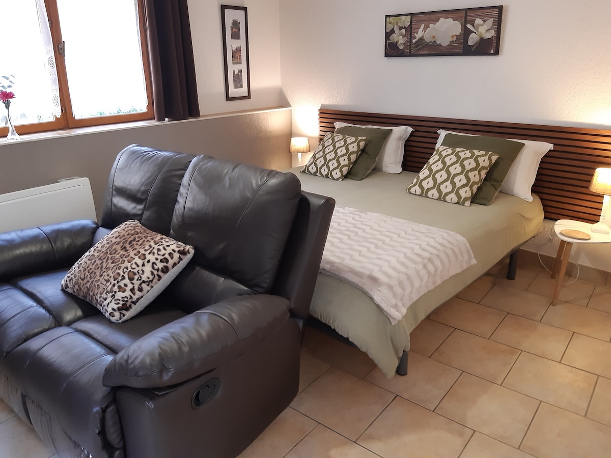 Dans un écrin de verdure, petite maison indépendante sur 2200 m2 de jardin, en retrait de la route, au bord d’une forêt, sur le même terrain que les hôtes. Nous vous accueillons dans notre beau paradis de fleurs, notre havre de paix vous attend. Logement de 2 pièces , l'une lavabo et 2 lits très confortables que l'on rapproche pour couple , l'autre salon, salle à manger et coin cuisine avec 2 couchages dont lit gigogne qui fait canapé très confortable. Une douche séparée , un wc séparé.