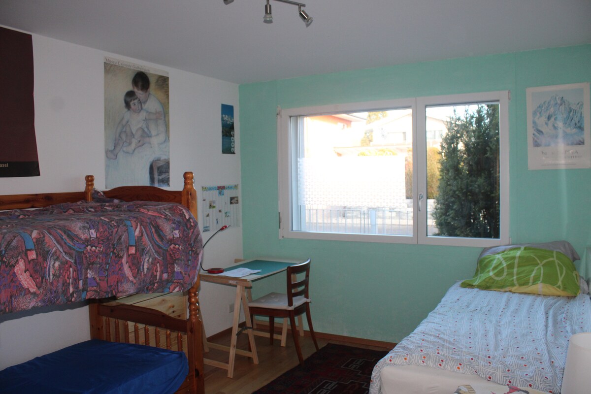 Frisch renovierte und teilweise neu möblierte grosse 3.5 Zimmer-Wohnung. Die Wohnung verfügt über ein Schlafzimmer, ein Wohnzimmer (SAT-TV) und ein Kinderzimmer (4 Betten). Zusätzlich gibt es ein Klappbett und oder Babybett. Das Badezimmer verfügt über eine Dusche und Badewanne. Die Küche ist voll ausgestattet mit allem drum und dran. Garten mit eigenem gedeckten Sitzplatz. - WLAN vorhanden - Kostenloser Parkplatz