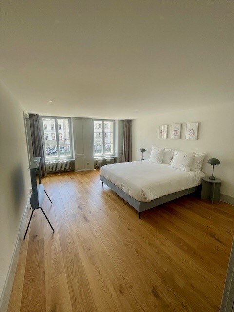 Magnifique appartement haut de gamme 170m2 Duplex Appartement unique dans une ferme patrimoniale rénovée à Villarsel-sur-Marly. 3 chambres confortables avec grands lits, grand séjour lumineux sous poutres, cuisine équipée et 2 salles de bain modernes. Piscine commune et terrasse avec vue sur la campagne et les montagnes. Places de parc à disposition. Un lieu alliant charme historique, authenticité et confort moderne pour un séjour inoubliable en famille ou entre amis.
