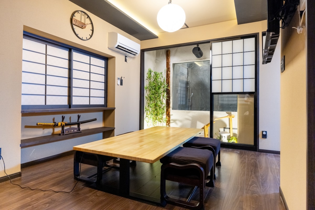 Enjoy a spacious Japanese-modern room with a cozy beds, tatami area, large dining table, kitchen. The room has 2 washbasins, 2 private showers, and 2 toilets, offering great comfort for groups. Located right in front of Tokyo Skytree, just 2 minutes to Solamachi and walking distance to Asakusa, it’s the ideal base for sightseeing. The area has supermarkets, convenience stores, and many restaurants. We have 9 identical rooms available. Experience your best Tokyo stay with us!