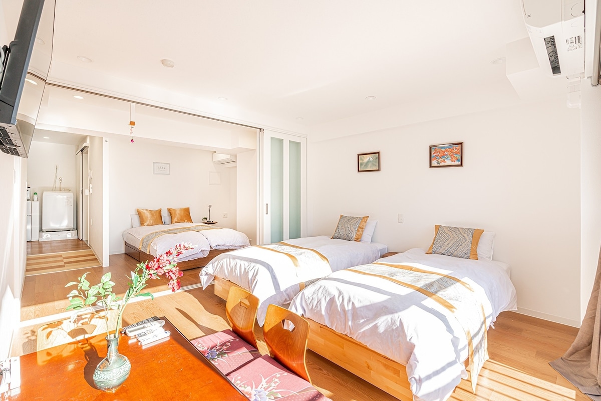 Experience the feel of a standard-sized Tokyo apartment in this deluxe studio for 2. Enjoy restful nights on a queen-sized bed and a functional layout ideal for remote work. Whether you're balancing work and wellness or simply unwinding, this space is a great urban sanctuary.