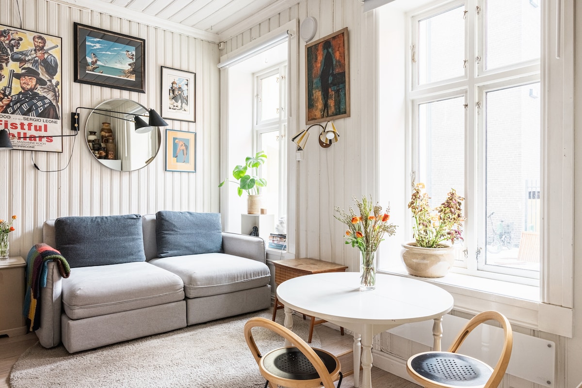 Be welcomed to a charming apartment with history and soul in the heart of Grünerløkka. Formerly a stocking factory and a violin workshop, now adapted to a 30 m2 living space for a comfortable stay in Oslos most pulsating city part. Within few steps you can enjoy a coffee at Tim Wendelboe's, steel a kiss at the fountain on Olaf Ryes plass, pass the waterfall to a culinary stroll of Europe in one building - Mathallen or see a concert at Parkteatret. And you didn't even leave the hood. ;)