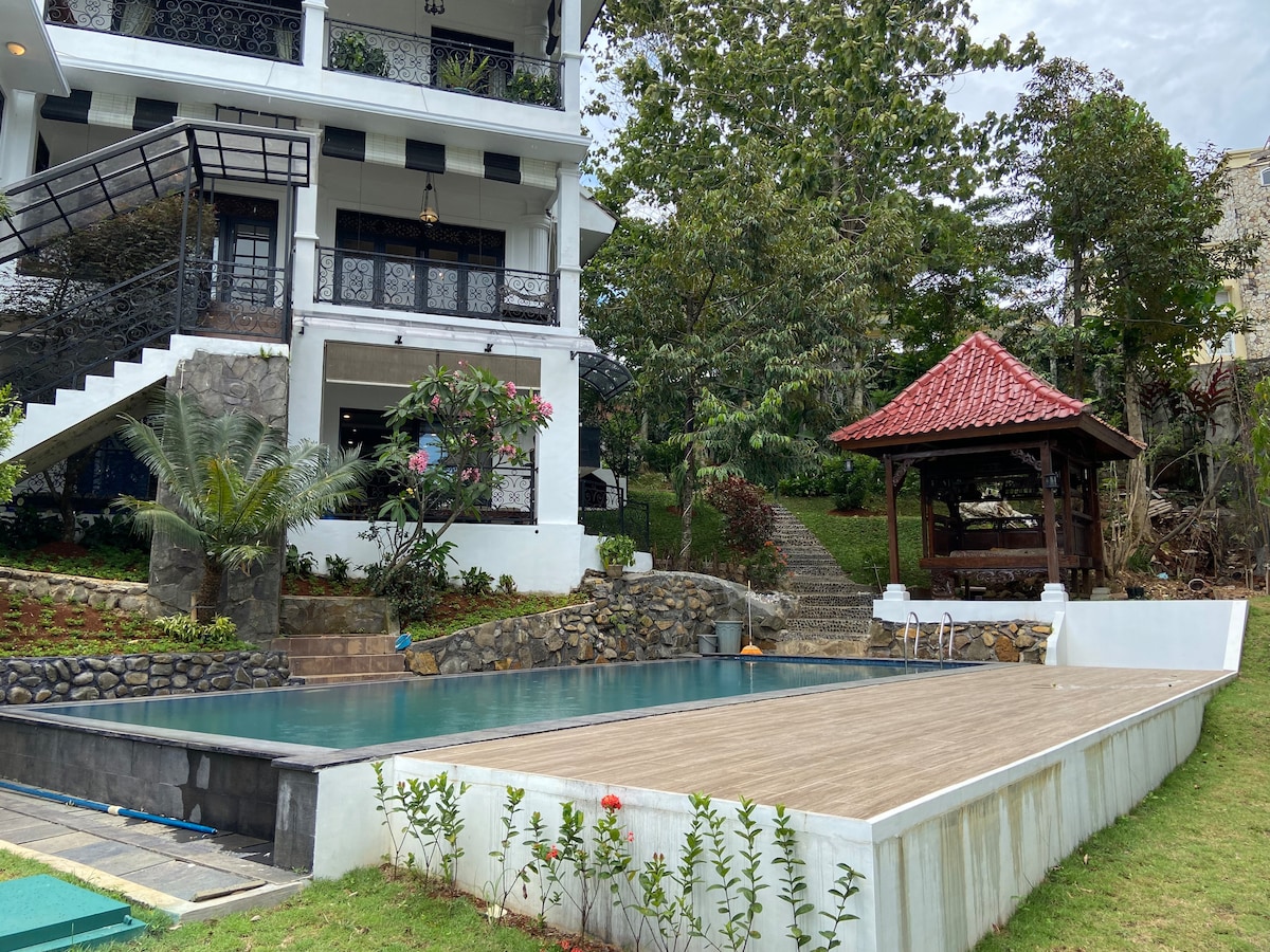 A brand new house in Sentul City, with nice garden, swimming pool and 2 unique gazebo. Each bedroom has bathroom & AC. Kitchen with large dining area, which can be converted into meeting place Villa Alana is a perfect place for staycation, holiday, family gathering, vacation or office workshop / retreat We provide most of the thing you need, so you can just relax and have fun Our main theme is spacious-stunning view, in a beautiful-strategic area , surrounded by tourist attractions.