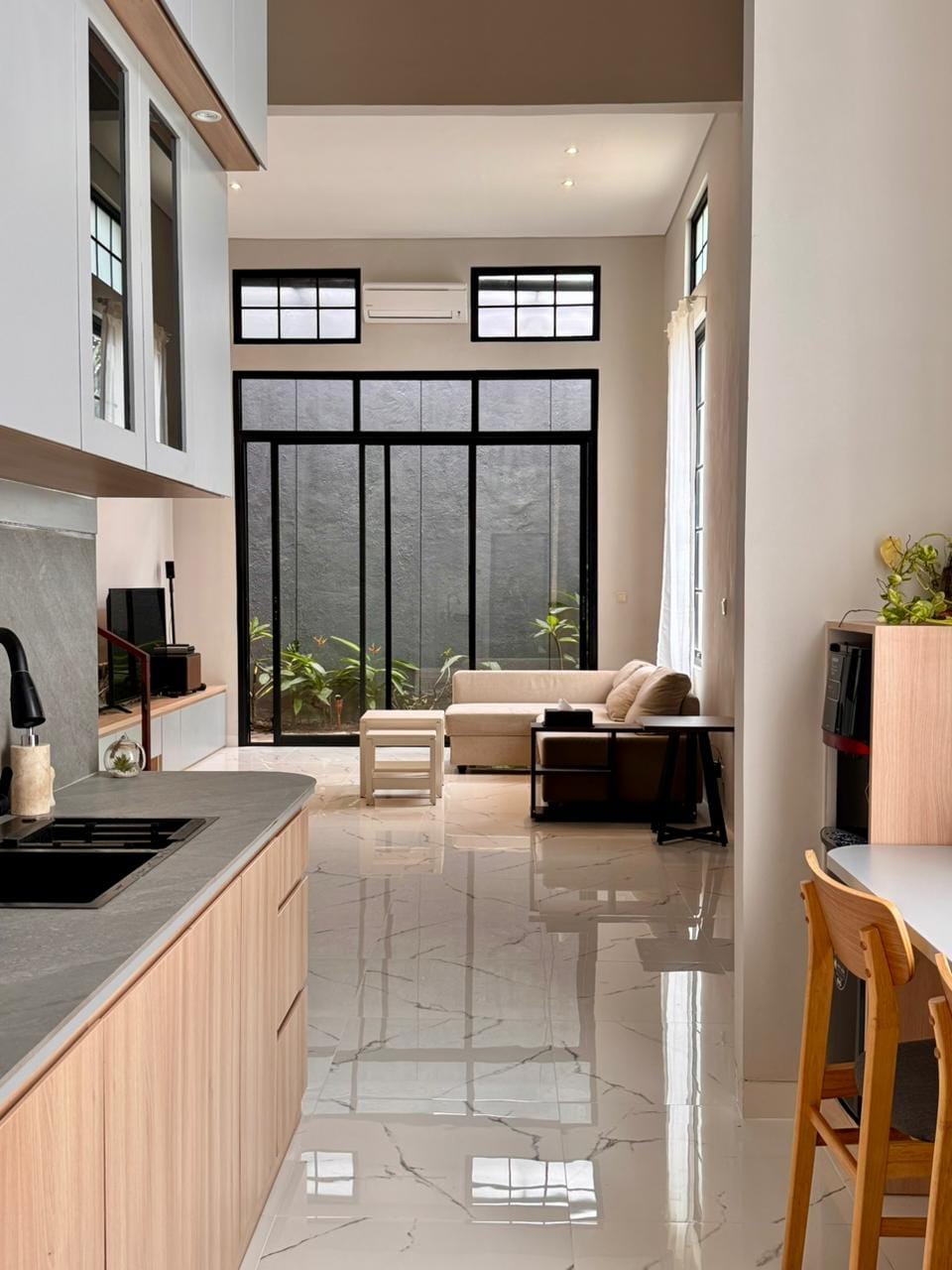 Hale Sentul offers a refined blend of creativity, comfort, and sustainability. Overlooking a golf course and surrounded by scenic trails, this artistic retreat features a charming mini garden and repurposed artworks as plant holders. Just a minute from Richie Lakehouse and 6 minutes from AEON Mall, it’s the perfect escape for relaxation and inspiration. Max capacity: 20 guests—ideal for a sophisticated, eco-conscious getaway.
