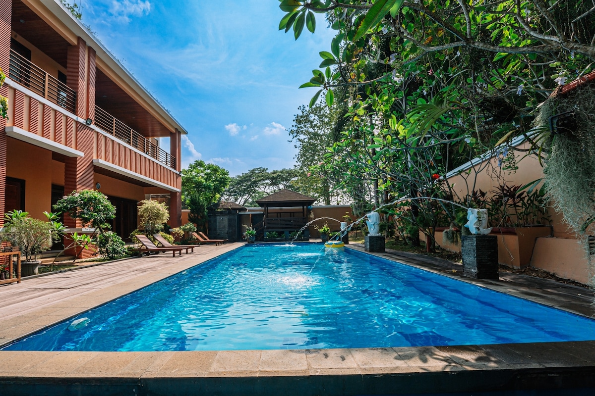 Located at Sentul City 1,100m2, this villa is perfect for up to 26 guests, making a memorable vacation with your family and friends. Indulge in the grandeur of this villa, 5 designed bedrooms, offering the perfect combination of comfort and luxury. Experience unparalleled relaxation with our private pool, the perfect spot to unwind and soak up the sun. If you're in the mood for some fun, head over to our billiard or ping pong table, and challenge your friends to a game.