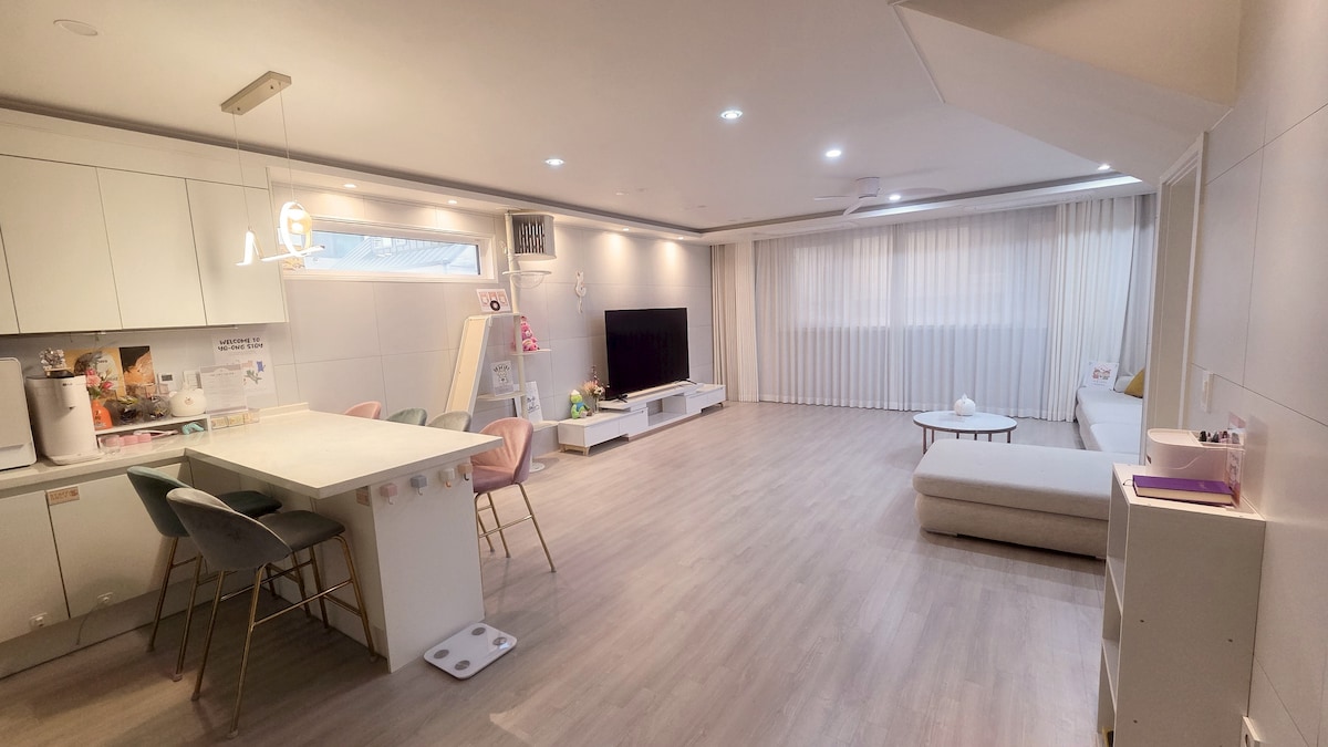☆ 크리스마스 이브/크리스마스/12월31일에 예약주신 게스트님들께 와인한병을 선물로 드립니다. 크리스마스 분위기 가득한 아늑에서 행복한 시간 보내세요♡ ✔️소음관련 이슈(고성방가, 층간소음)로 음주, 파티 목적의 예약은 정중히 거절합니다. '아늑(a.nuk)'은 조용하고 편안하게 내집처럼 지낼수있는 공간입니다. 편안한 침구, 넓은 거실로 가족여행에 이상적입니다. 각 침실은 아늑하고 편안한 분위기를 제공하며 침대에 누워 빔프로젝트를 보시며 분위기 있는 시간을 보내실수 있습니다. 근처에 카페와 음식점, 피부관리실, 네일숍등이 있어 여가를 즐기실수 있어요. 평화로운 환경을 갖춘 '아늑'에서 특별한 추억을 만들기에 완벽합니다.