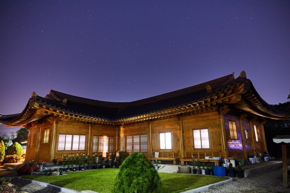 본채 (다사랑)은 전통 궁궐형 한옥으로 황토와 나무로 지어진 건강한 집 입니다