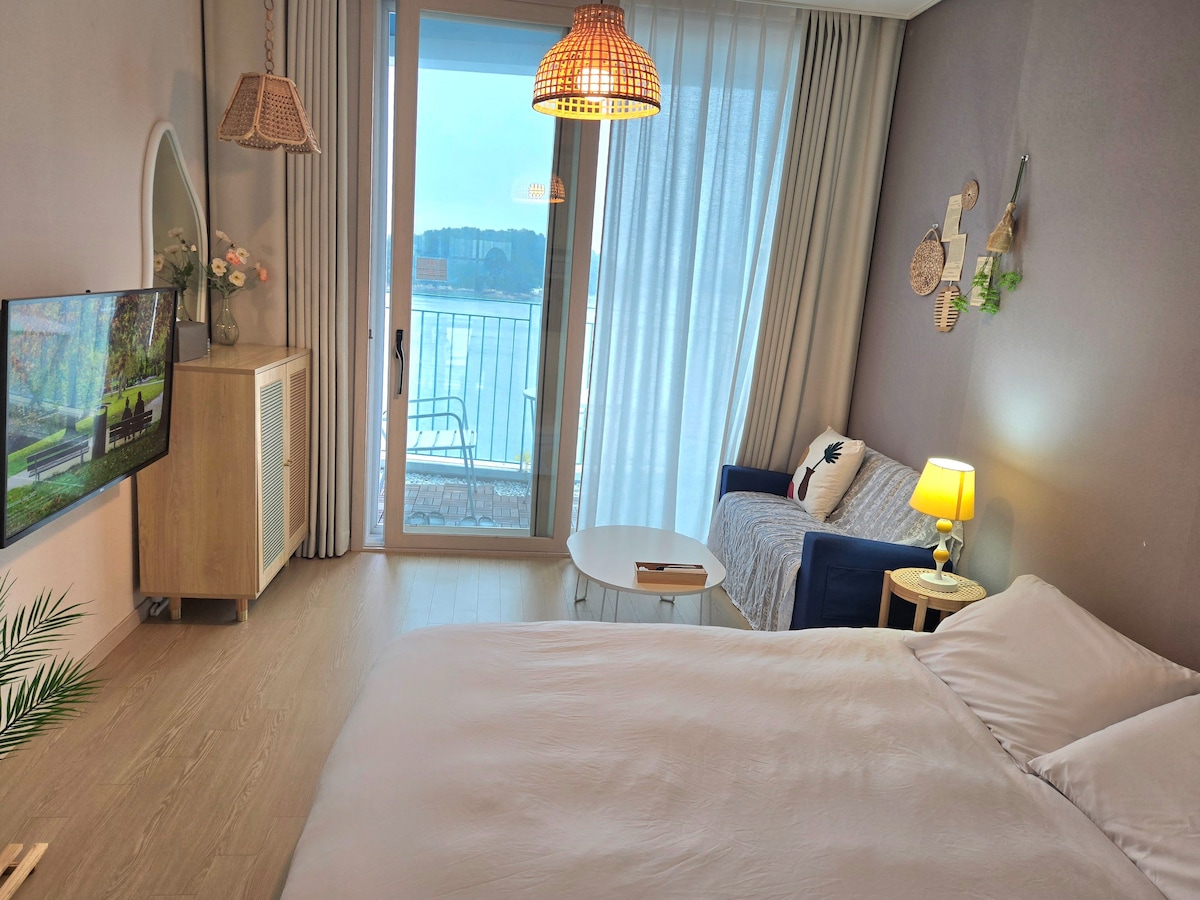 【JH9】高层海景_露台_日出_日落(Netflix/迪士尼/Tving/Youtube)_仁川机场20分钟