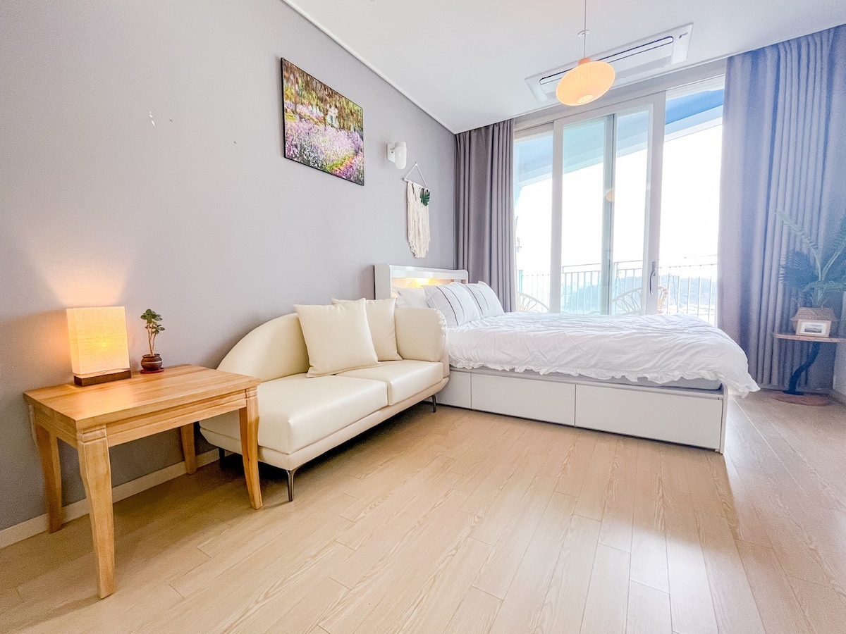 永宗岛全海景房源,客厅和卧室分开,可简单烹饪,步行2分钟到便利店、咖啡馆和餐厅