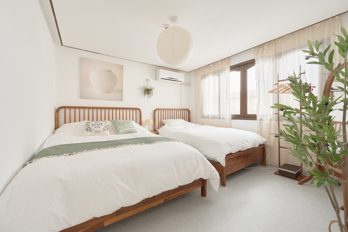 2号房/望远站5分钟,弘大站10分钟[2-4人房:大床+超级单人床]#长期住宿折扣,免费行李寄存,旅游景点