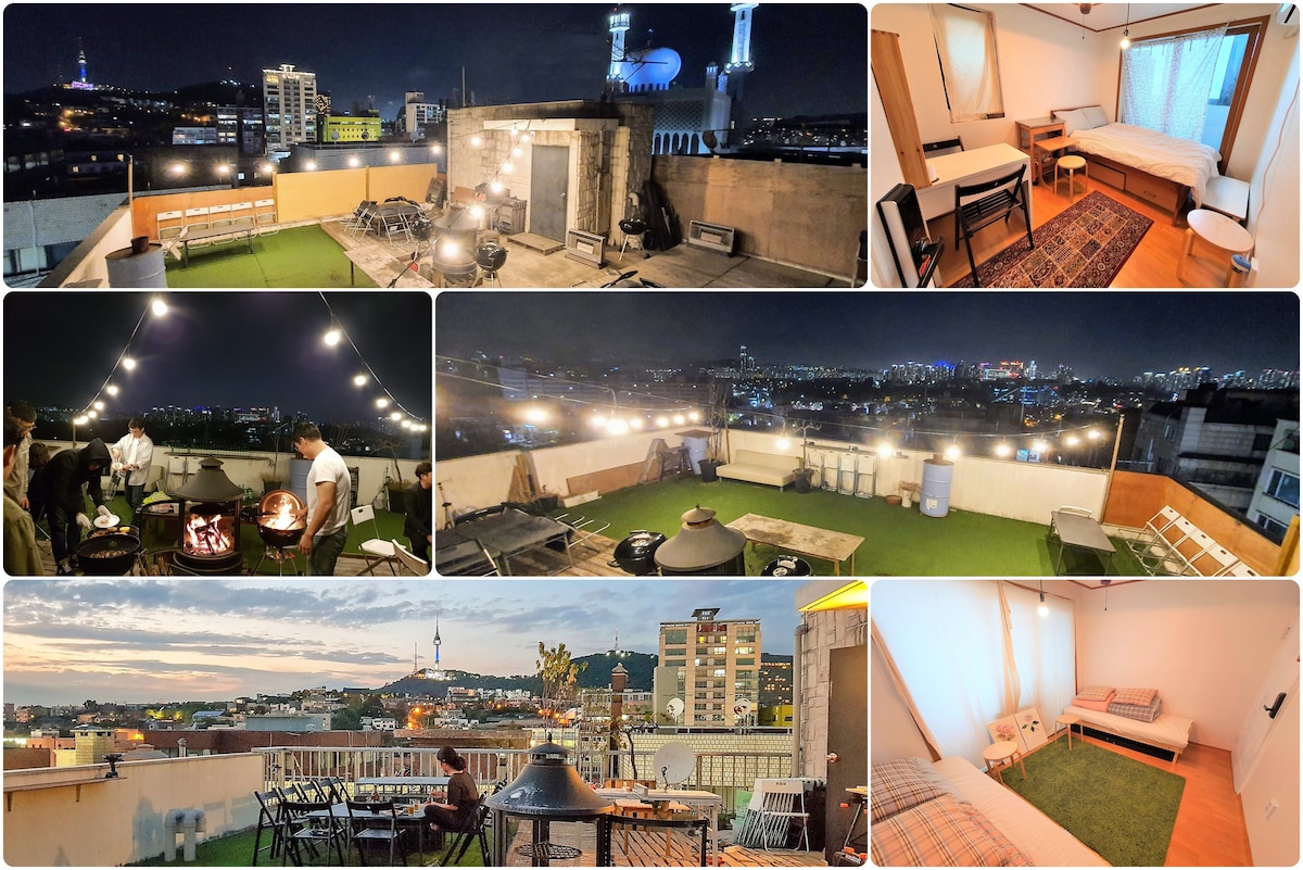 ★My house is located 3mins from Hongdae station. Perfect place for trasportation convenience. There is a cozy parasol and a drawing-room in the rooftop of our house for 16 people. BBQ is equipped with facilities to enjoy comfortably. -Near Hongdae neighborhood, Yeonnam-dong, Hongdae street has fancy cafes and restaurants, exciting bars and clubs. -You can directly come to Hongik University Station by AREX from inchen international Airport We promise to provide the cleanest room . Welcome.