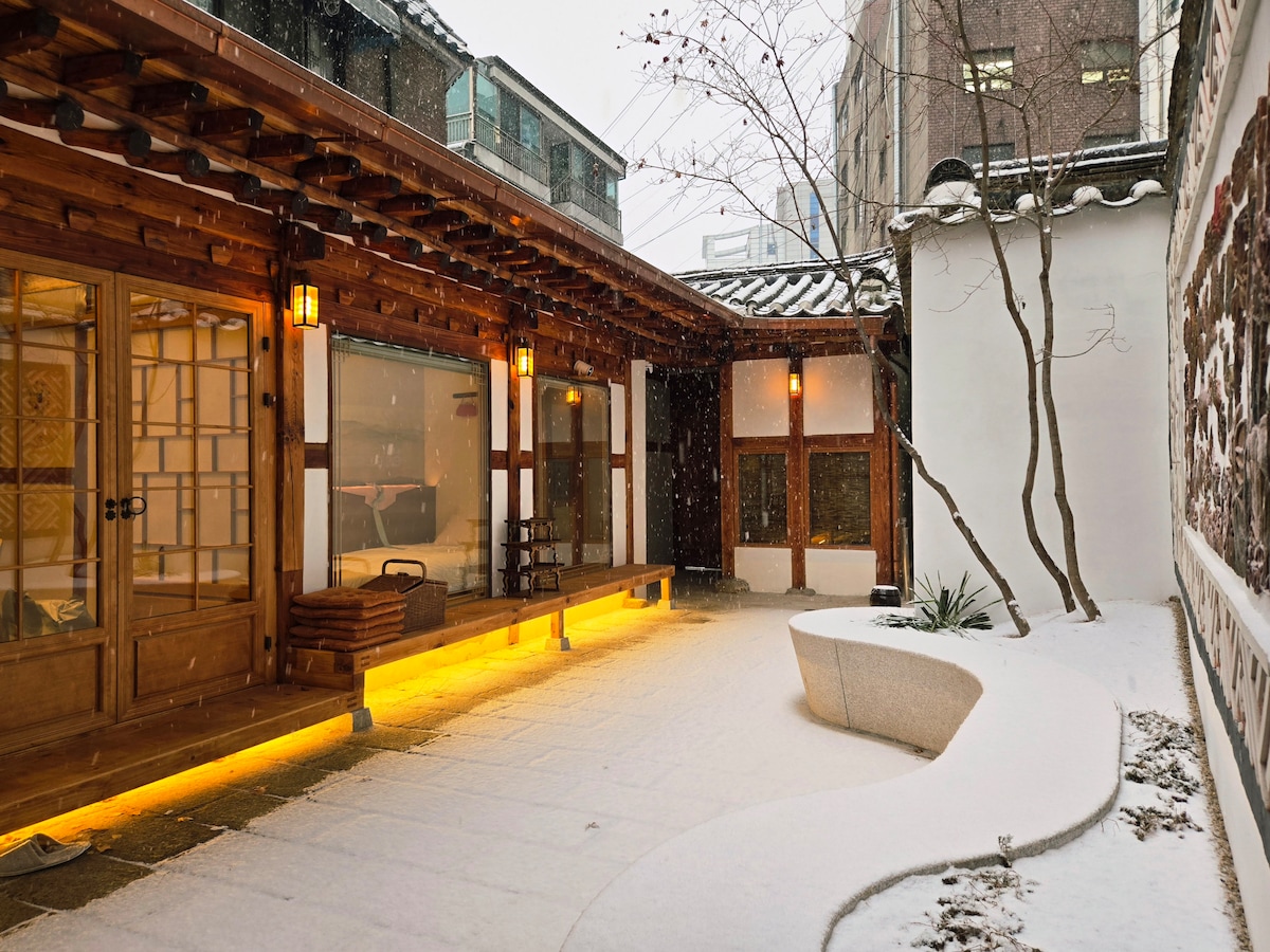 1. A 5-minute walk from Gyeongbokgung Station. 2. Surrounded by popular spots, offering plenty to see and explore nearby 3. Operated as a traditional Korean house, providing a space where the whole family can experience Korea's traditional culture 4. A separate building features a sensuous indoor jacuzzi and a tea room 5. Recently constructed with the participation of a master carpenter registered with UNESCO. The building passed the city of Seoul’s architectural review and it was registered