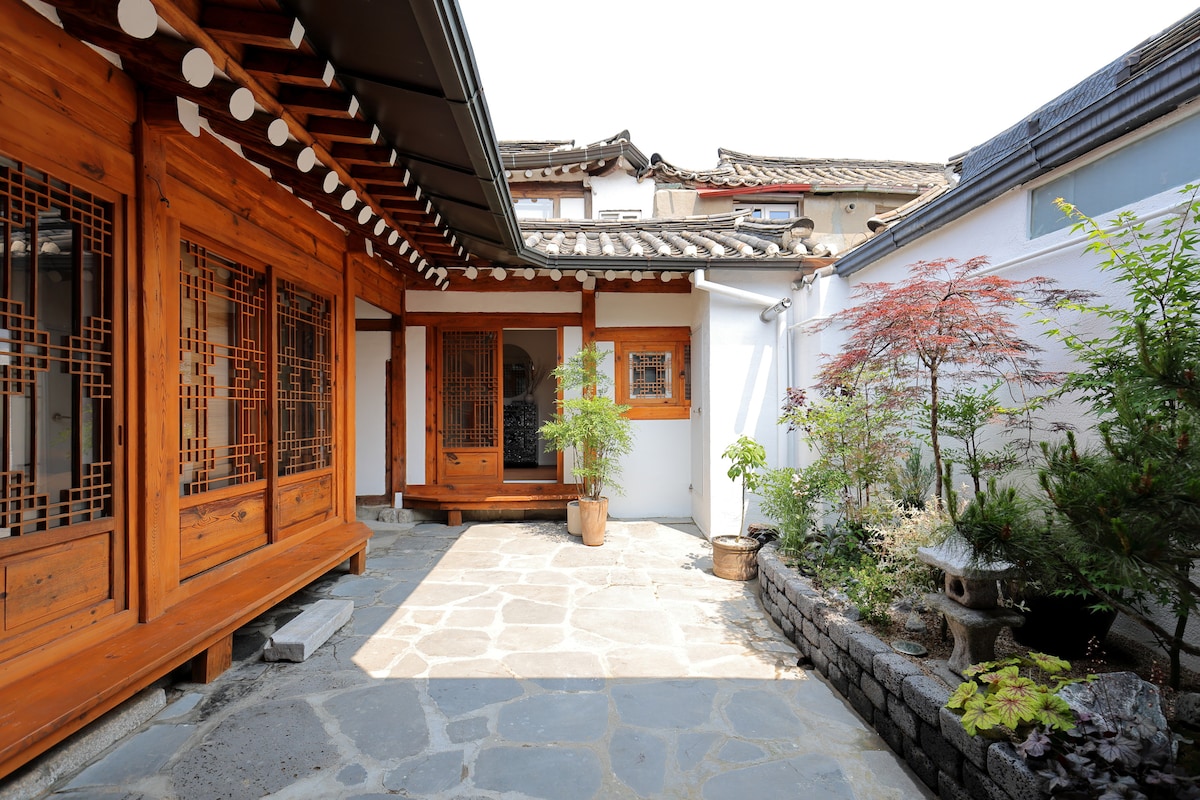 Private Premium Traditional Korean House Haneuldam(a house filled with the sky) 경복궁 옆에 위치한, 단독으로 사용하는 프라이빗한 한국 전통 주택 하늘을 품은 마당, 문을 열면 넓은 거실이 펼쳐져 많은 가족이 함께 머물기에 편안한 곳입니다. 🌿 서울의 중심 - 경복궁 , 광화문, 인사동, 명동, 홍대를 빠르게 이동 할 수 있는 최고의 위치 - K-Pop Demon Hunters의 배경이 된 서울의 중심지를 편하게 이동하기 좋은 완벽한 입지 🌿 한국 전통 주택의 멋 - 집 전체 단독 사용, 한 팀만을 위한 프라이빗 주택 - 넓고 깨끗한 고급 거실 - 침실4개 욕실2개 - 호텔식 침구로 편안한 잠자리 - 올리모델링 - 바테이블 업무 공간 🌿 매력포인트 - 한국식 정원 마당 - 평평한 대지에 위치 - 숙소 옆 많은 맛집과 편의시설 - 위치 교통 최고 - 도보 근거리 🛡️공유숙박 실증특례 지정 합법 숙소