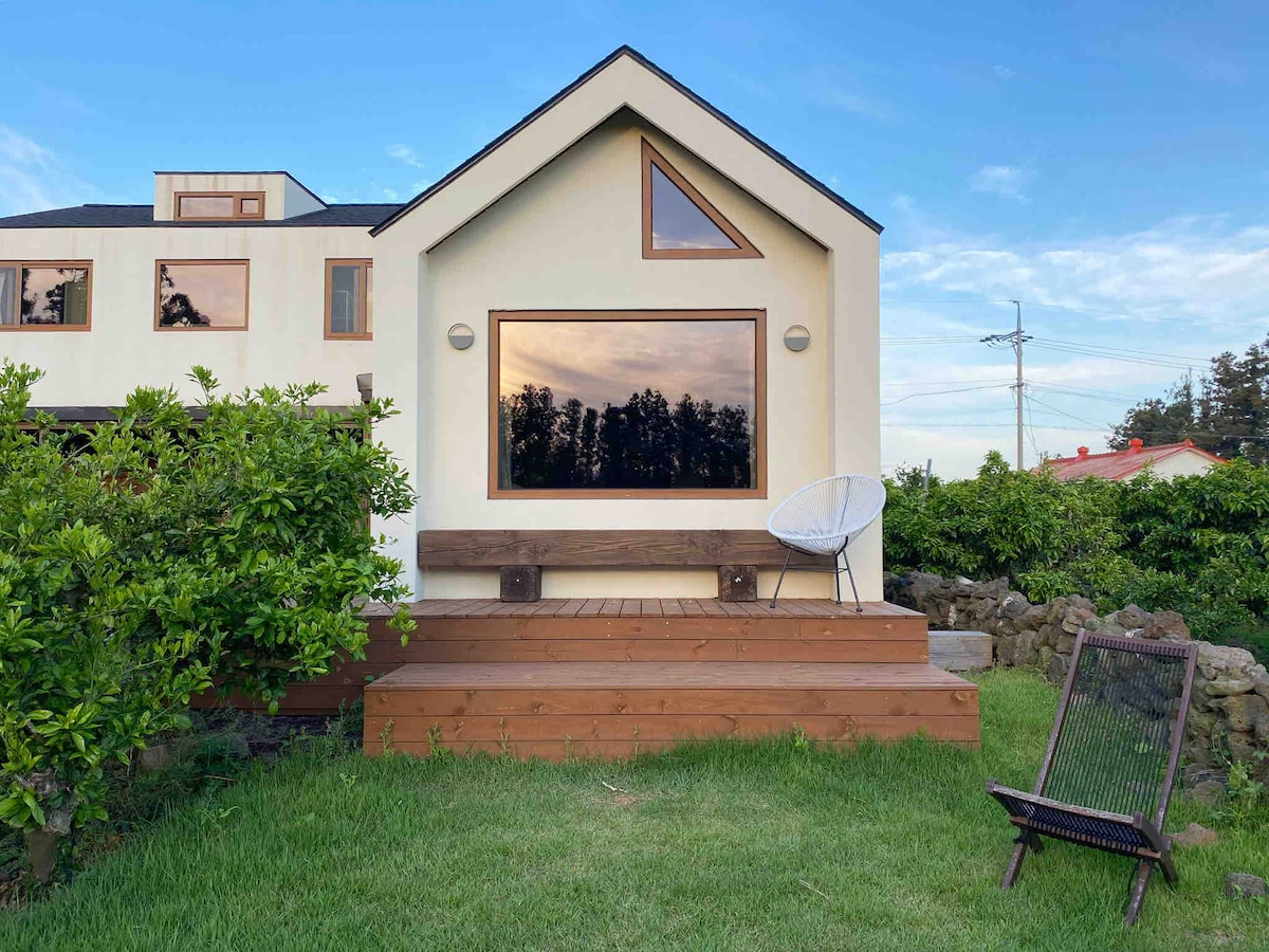 산방산 근처 귤밭에 위치한 동화같은 나무집 새소리와 노을이 인사하는 동화같은 곳 최대 2인 ‘고요한오후’ 와 5인까지 가능한 ‘그리니제주’ 두 개 독채가 귤밭에 있습니다 Big towels available upon request Rental car is highly recommended but for those without a rental car, taxi/uber app is available. many restuarants within 5 minutes driving away and various local delivery food We also offer a guidbook of local restaurants and cafes near the cottage. Let me know if you have any enquires:) 가장 최근 사진은 인스타그램 @greeny_jeju에서 확인 가능