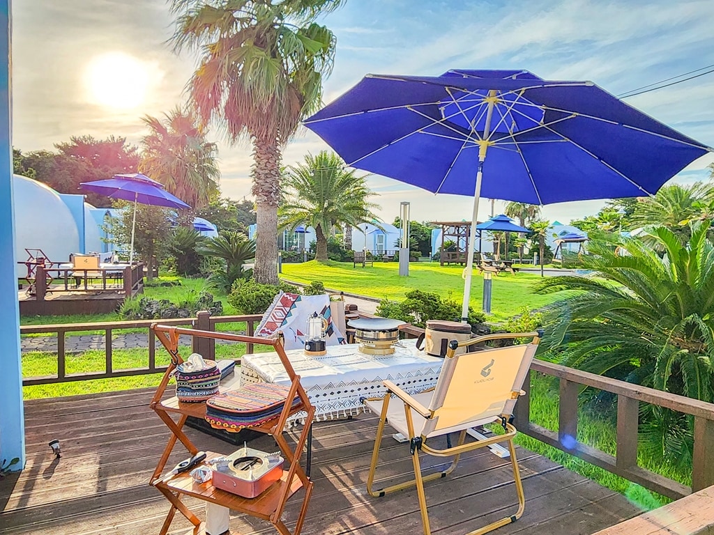 [제주 감성 가득한 애견동반 독채펜션] - 글램핑 온 듯 이색적인 숙소에서 즐기는 하루 - 객실 테라스에서 황홀한 일몰을 감상하며 즐기는 캠핑 감성 바베큐 - 야자수 정원으로 둘러싸인 대형 야외 수영장에서 즐기는 시원한 물놀이 - 제주 동부 관광명소(성산일출봉, 섭지코지, 표선해수욕장 등) 및 맛집 약 10분 거리 반경에 위치 - 애견동반 가능