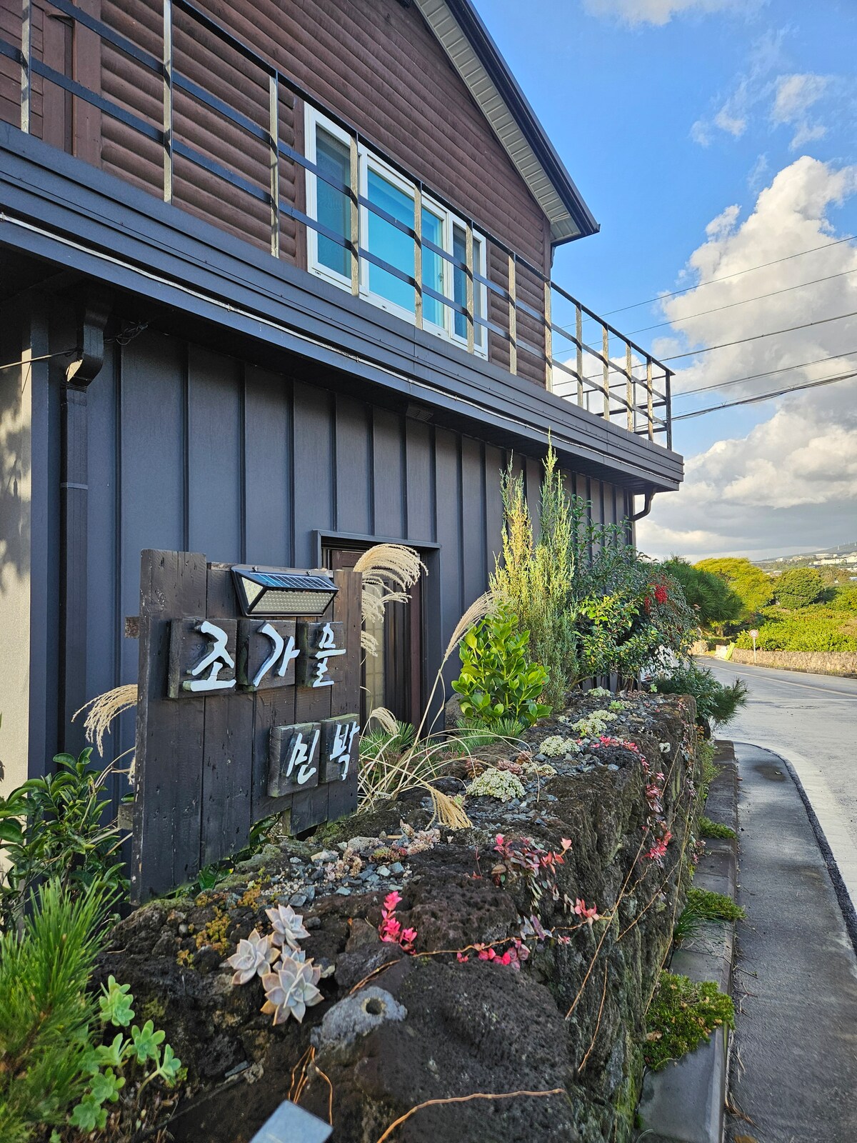 Collaboration of nature and modernity of Jeju. No hidden camera guaranteed. You can try the detector installed in the house. - up to 6 guests - duplex with one livingroom - 2 bedrooms: one with bed, one Korean Ondol - 1 bathroom - front yard - 35 min from the Airport - 3 min from Kimnyung Sea - 5 min from Maze Land - 10 min from HamDuk Sea - 10 min from WolJungRi Sea - 15 min to Pyeongdae-ri - 15 min to Bijarim Forest - 15 min to Sehwa Beach - 25 min to Seongsan Sunrise Peak