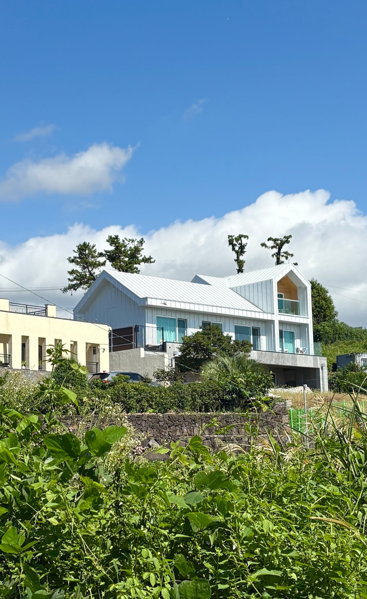 this is a two-story detached house. we are living in ground floor with preparing to help you. and you can stay in second floor and front door is other thing. the second floor is duplex type and there are two rooftop terrace, a large salon attic. one terrace is sea view and another one is Hallasan Mountain view. living room is like a greenhouse cafe with huge glass window. ground is kitchen garden. I love to glow various kind of plants. if you cook something, you can picking this vegetables.