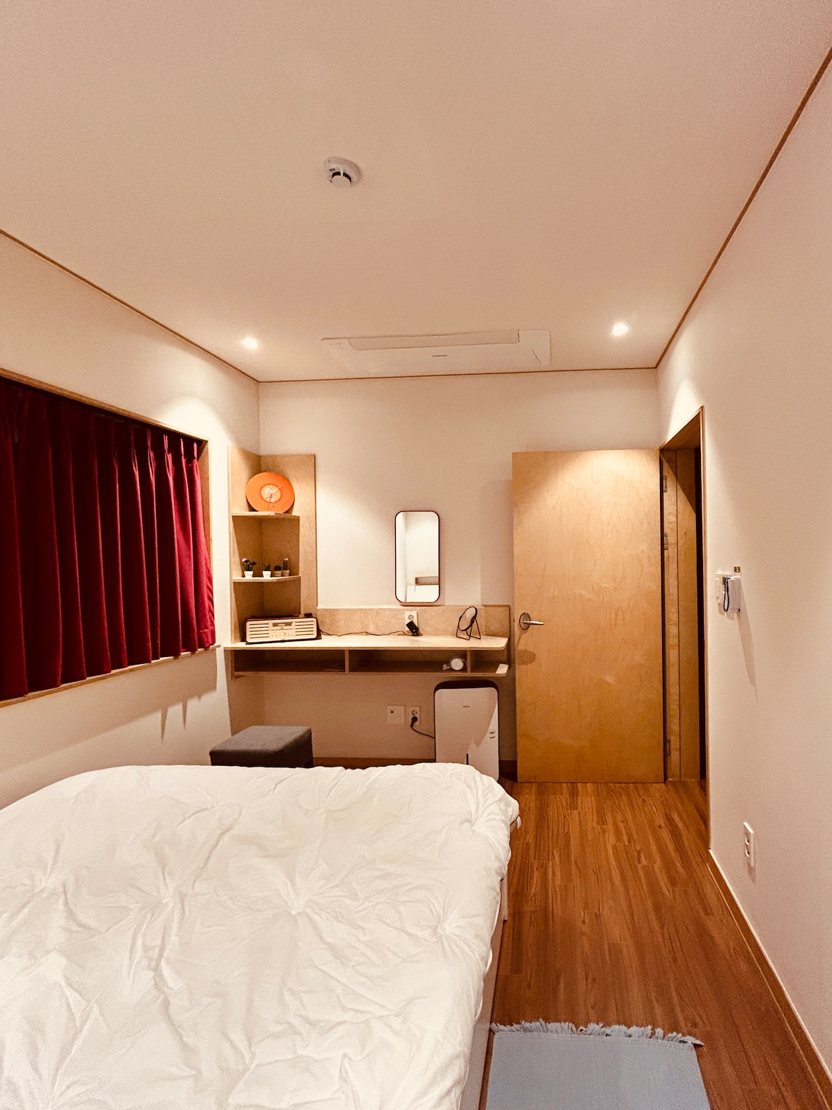 Preeria is nestled in the cozy mid-mountain area on the west side of Jeju Island. Enjoy a sky full of stars at night, the sound of birds in the morning, and the peaceful forest views of a Jeju village. The room is for 2 people (maximum 3). If your group has 3 guests including an infant, please make the reservation for 3 adults. Extra bedding will be provided for additional guests. The Couple Room is a cozy studio for two on the 2nd floor, featuring a private entrance, bathroom, and kitchen.