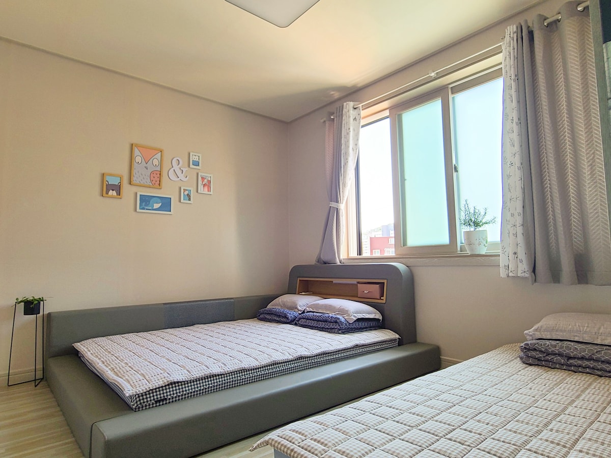 안녕하세요. 어릴 적 추억이 담긴 집을 새로 리모델링하여 통영을 여행하는 분에게 제공하고자 합니다. 민박업으로 등록 완료! 단독주택을 리모델링하여 가족, 친구 단위로 여행하기 적합! 4인 룸. 방2. 거실, 욕실2, 화장실1, 베란다, 옥상으로 구성(최대 6명까지), 1층을 주차장으로 리모델링하여 주차가 2대 가능. 와이파이, 시스템 에어컨 완비 통영해저터널에서 걸어서 2분, 윤이상음악공원 길 건너에 위치. 길건너 바닷가 1분 자동차 5분, 걸어서 10분: 서호시장, 중앙시장, 동피랑, 유람선 터미널 자동차 10분: 케이블카, 루지, 이순신공원, 남망산 공원, 세자트라숲 자동차 15분: 수산과학관, 달아공원도 편의시설: 길 건너 할인마트, 동네에 횟집거리가 있어 저녁에 주차하고 나서 회를 먹기 좋아요 인원 4인 기준이고, 1인당 추가 요금 1.5만원으로 6명까지 가능합니다. 아름다운 통영에서 즐거운 추억 많이 만드시길 바랍니다. 환영합니다!"