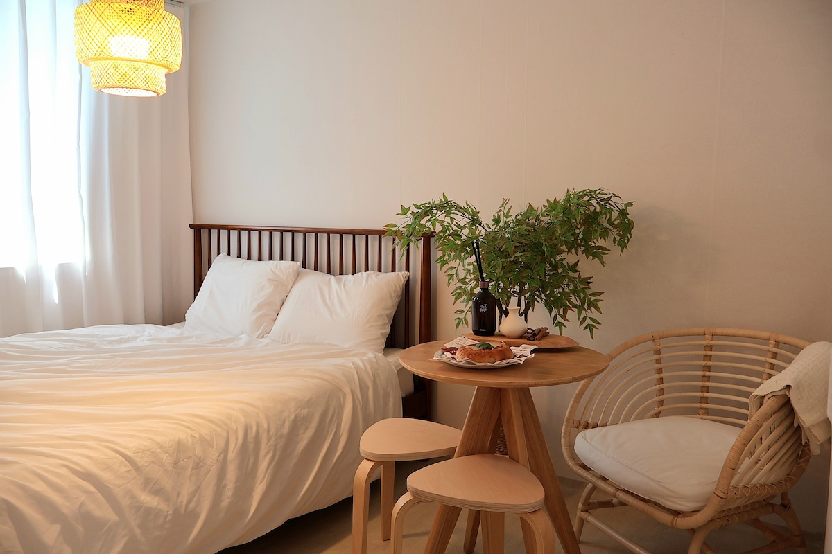 💖서면역 도보 1분 MZstay💖 서면에 위치하여 부산 어디로든 여행이 편리합니다. ! [ 체크인 16시 / 체크아웃 11시 ] - 셀프 체크인 - 물품 보관Ok, 레이트 체크아웃 Ok - 얼리체크인은 객실 상황에 따라 확인이 필요합니다. - 레이트 체크아웃은 시간당10000원 비용이 발생합니다. [침실 겸 거실] - 더블베드 1개 (기준 2인/ 최대 2인) [살균/소독 된 침구류] - 전문업체로부터 살균 소독 된 침구류를 제공합니다. [취사 Ok] - 간편 취사 가능한 각종 조리 도구 - 냉장고, 전자레인지, 커피포트 - 조미료는 구비되어 있지 않습니다. [ 욕실 ] - 샴푸, 컨디셔너, 바디워시 - 드라이기, 수건 [ 주차 ] - 건물 내 유료 주차 - 투숙객 7,700원/일, 99,000원/월 - 16시이전 주차시 30분당 1,500원 [취소/환불] - 취소, 환불 규정은 에어비앤비 규정에 따라 처리됩니다. ※ 호실별 소품 및 침대방향은 상이할 수 있습니다.