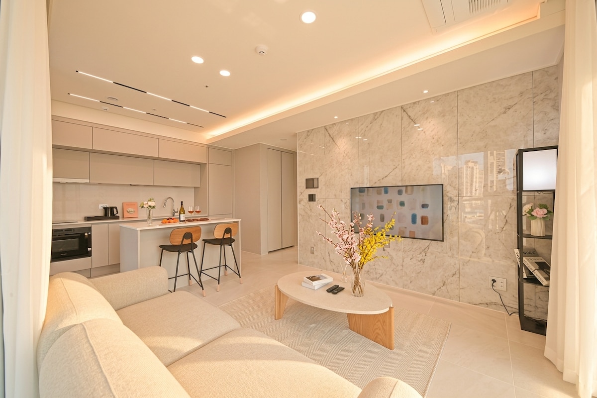 釜山#海云台#海滩步行1分钟#光安大桥景观 #高层城市景观#胶囊列车#3床#免费停车#自炊#净水器
