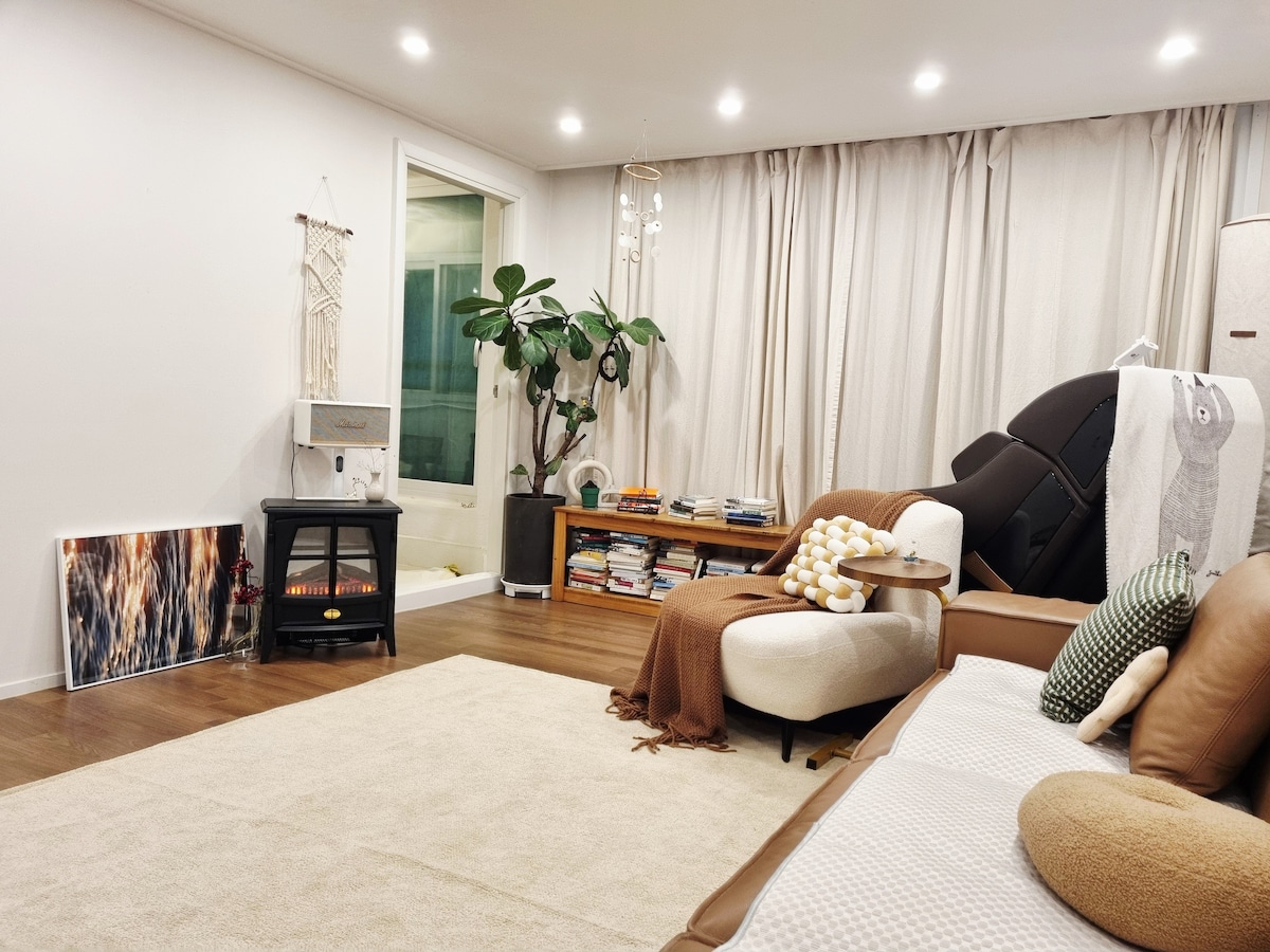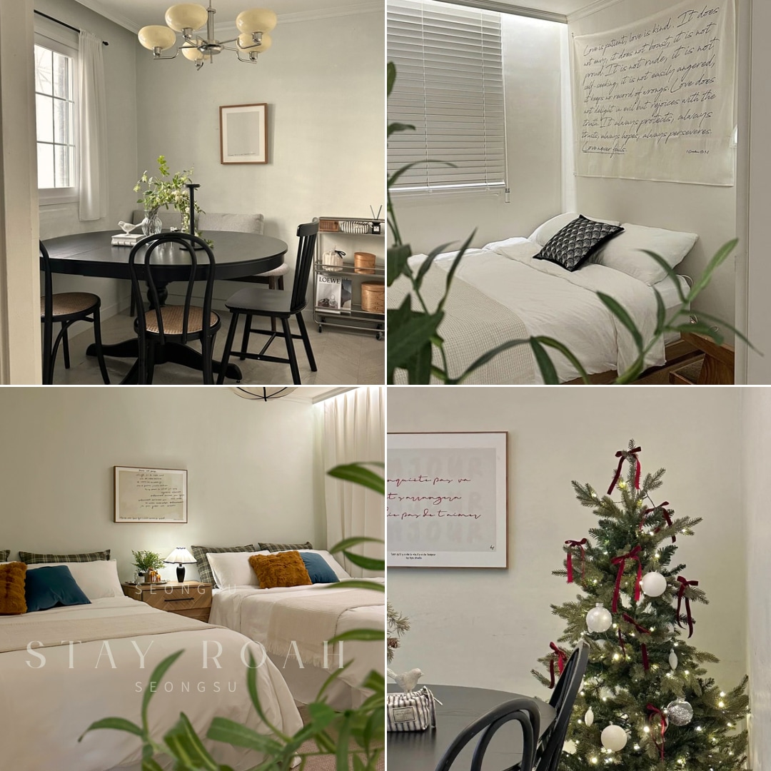 12월 평일event 일요일~목요일(공휴일 제외) 4명 이상 예약시 힐튼호텔에서 판매중인 스파클링 와인 한병 제공🍾 • 서울숲역, 뚝섬역 도보 3분 거리 • 연무장길 도보 10분 거리 🖤 햇볕이 드는 지상층에 위치하고 있습니다. | 퀸침대 3개 (탄력있는/푹신한 매트리스 두 타입) | 스마트 tv(일반채널x) 빔프로젝터(미러링으로) ✨청결 보장 침구와 수건, 바닥, 가구 등 모두 살균처리하여 안심하고 머무르실 수 있습니다. 🥘조리는 끓이는 음식만 가능합니다! (후라이팬 제공X, 가스레인지 1구 가능) ❄️냉장고 교체로 인해 냉장기능만 가능합니다(냉동 X) 📝합법숙소로 10월부터도 안심하고 예약하셔도 됩니다. 내국인은 위홈을 통해서도 예약이 가능합니다.(소정의 수수료 절감가능) 위홈 사이트에서 숙소번호 2021008를 입력하여 예약바랍니다:) Ka💛💛talk : bky530