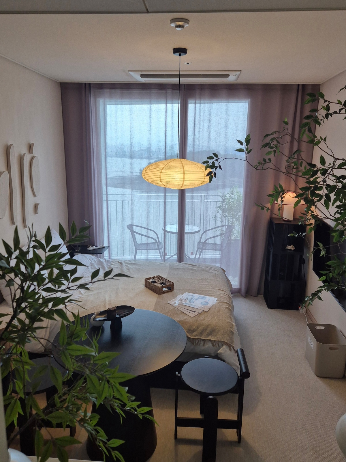서울에서 가까운 인천 서해 바다의 너른 풍경, 빠듯한 일상 속 잠시 쉼이 필요할 때 마음 가볍게 놀러오세요 :) 늘 깨끗하게 관리하고 있습니다. 바다와 초록 공원이 내려다보이는 고층, 양면 통유리창으로 바라보는 시원한 통창 오션뷰, 넓고 쾌적한 레지던스 대형 복층 원룸 감성 숙소 ▪️인천공항 자동차 15-20분 ▪️인스파이어 아레나, 파라다이스, 을왕리 해수욕장 등 주요 관광지 자동차 25-30분 ▪️구읍뱃터 선착장 2km 자동차 5-7분 ▪️상가 중심 지구, 도보 5분 이내 식당, 카페. 건물 1층 편의점 ▪️넷플릭스 ▪️최대 8인 ▪️이용시간 - 체크인 : 오후 4시 - 체크아웃 : 오전 11시 *얼리체크인/레이트체크아웃은 추가 비용 및 스케줄 조율이 필요하니 사전문의 부탁드립니다. ▪️반려동물 동반 불가 ▪️실내 흡연 절대 금지 ▪️삼겹살 바베큐 불가, 고기/생선/새우 굽기 불가 ▪️주차(1대 무료) - 건물 B1~B4 /주차장-숙소 연결 (2대 이상 추가 비용)