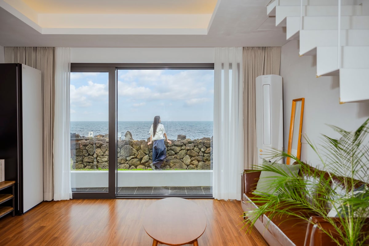 你好。 位于西归浦中心的悬崖上,拥有永久网和海景房。 我们的空间是私人小型独栋型空间,与其他游客分开,入住者可以毫无噪音地使用。 客房面积为19坪,分为卧室和客厅等,包括客房在内。 游泳池、可以吃早餐的咖啡厅、野外庭院等所有空间都可以眺望大海。 与公用游泳池一起,在拥有最佳大海视野的美丽空间提供早餐,在济州旅行中带给大家悠闲和舒适感。 由英菲尼迪游泳池组成的游泳池在5月到10月之间运营,除此之外,烧烤设施等所有设施一年四季都可以享受。 在可以免费吃早餐的咖啡厅里,是可以同时看到济州岛大海和岛屿的美丽空间。 希望大家在咖啡厅和屋顶庭院凉爽地望着凡岛,留下能够承载济州岛美丽晚霞的回忆。